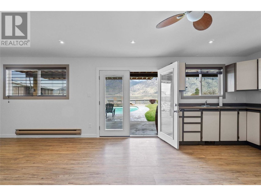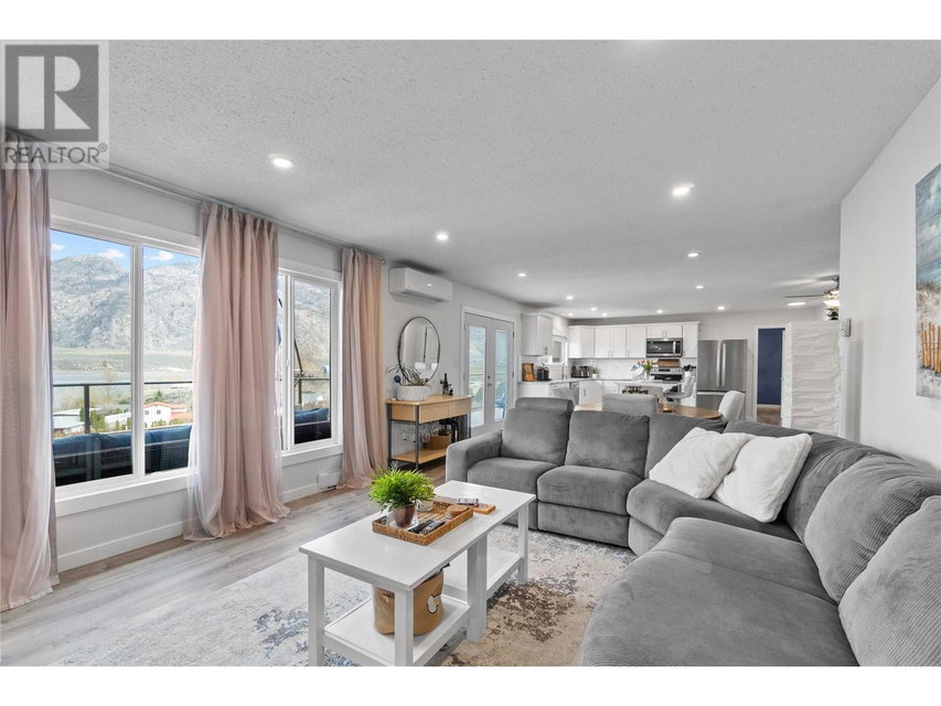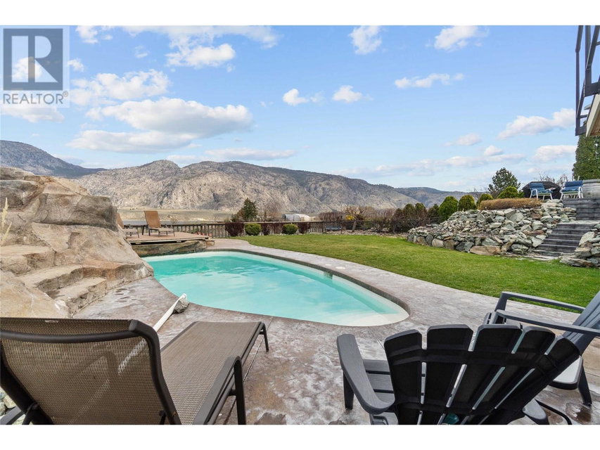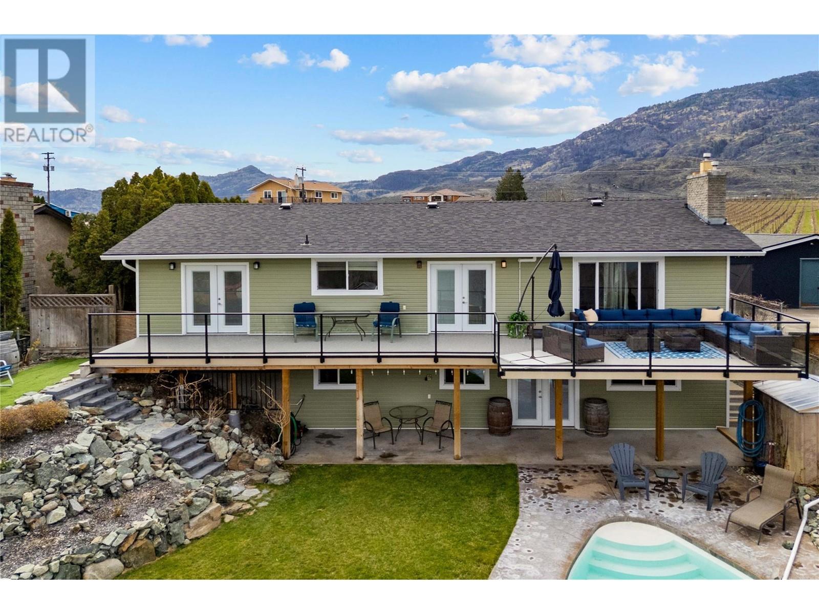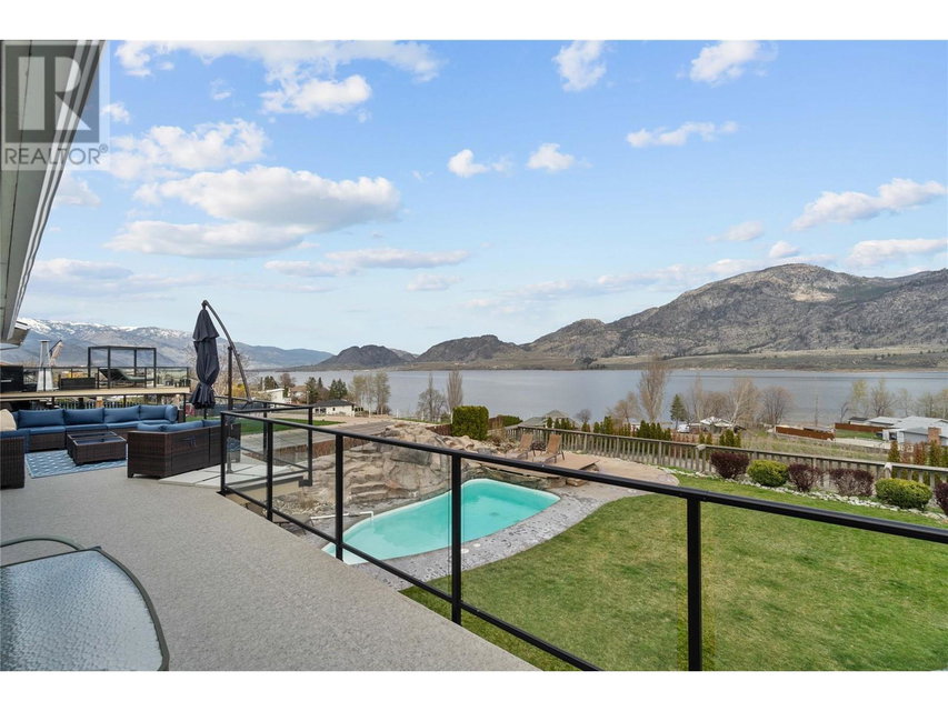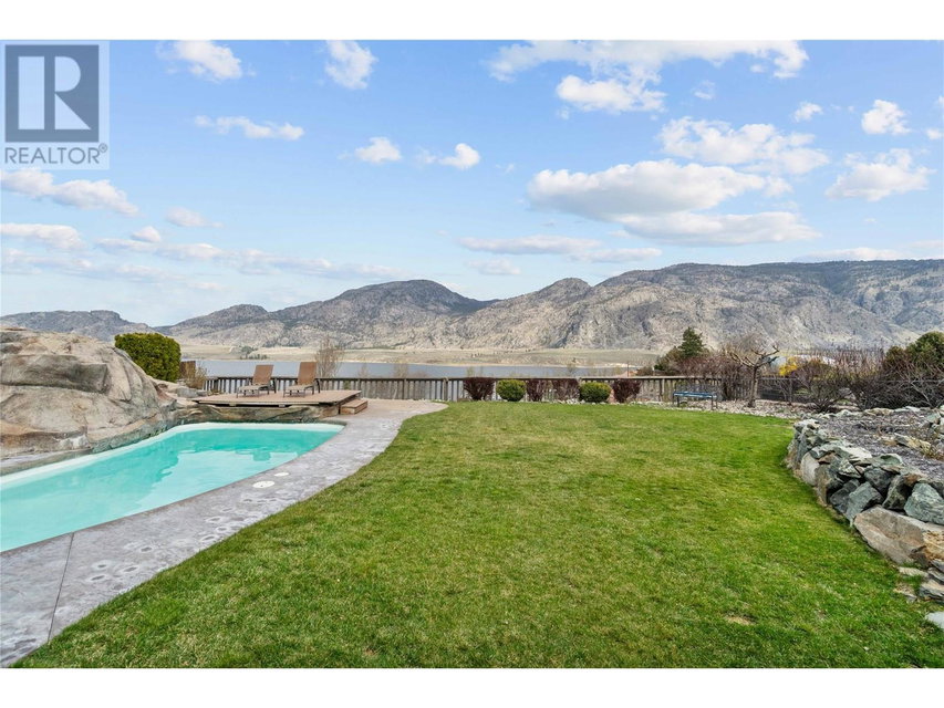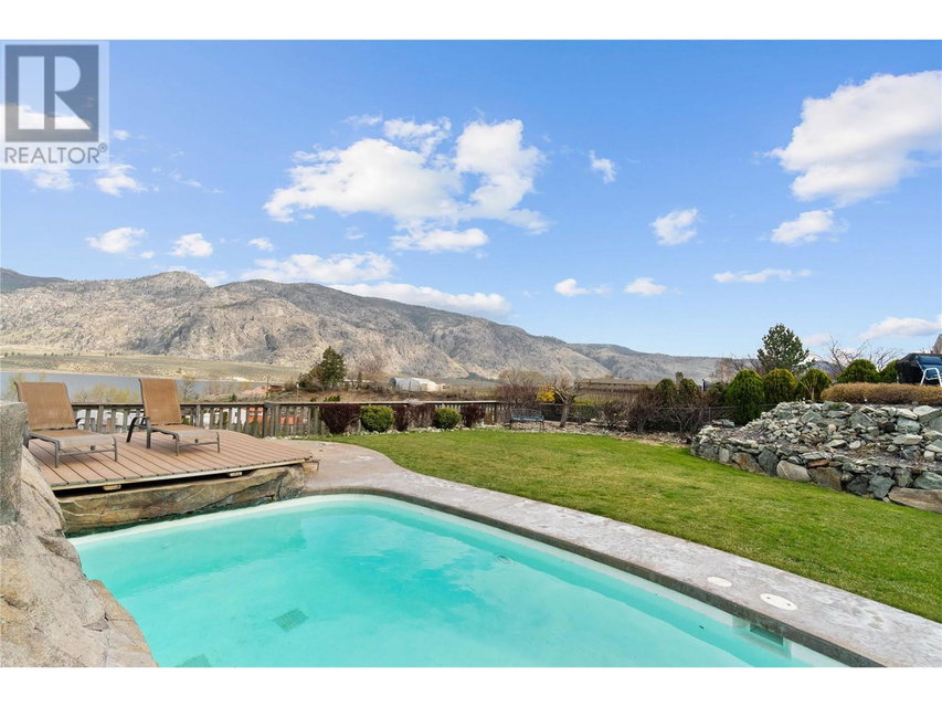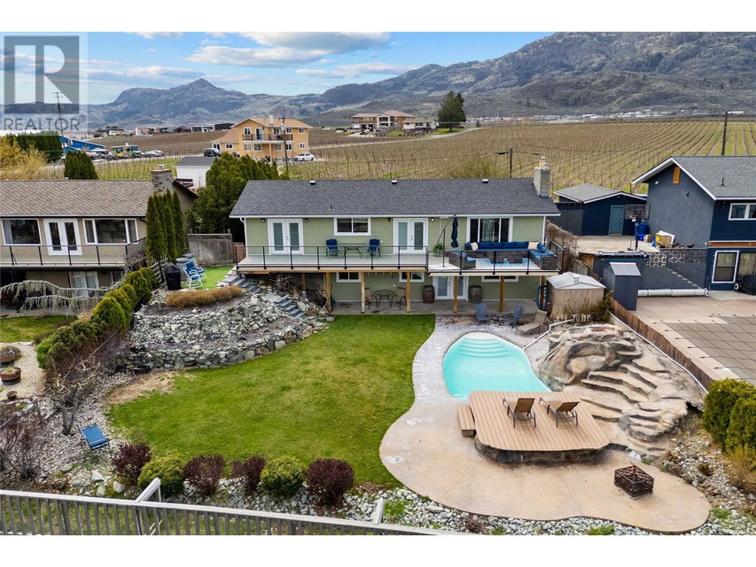 Dreaming of retiring in the Canadian desert? Welcome home to Canada’s warmest lake, Osoyoos. Lakeview living surrounded by vineyards yet steps to lake + town. Updated in 2020. 4 bdrm + 3 bath home w/pool + large yard The floorplan of this house offers flexibility with the ability to use the home as a 4bdrm + 3 bath family home or a 2bdrm + 2 bath home upstairs + 2 bdrm suite + bath downstairs. Upstairs is primary bdrm w/ensuite, laundry + walk in closet, 2nd bdrm + bathroom + Dream kitchen featuring s/s appliances, large island and endless lakeviews. Direct access of kitchen to a large lakeview deck that is ideal for hosting. Dedicted main floor laundary and storage. Downstairs is a 2 bdrm 1 bath suite with kitchen, laundry and storage. Enjoy morning sunrises and avoid the afternoon heat as this property faces East. Concrete salt water pool, grass area for the kids/dogs and room for all your garden plans. The views of the mountains, valley and lake are simply spectacular. Walk/bike to the lake, town, golf and wineries within minutes. Boat launch is 500m away. Osoyoos Lake is Canada’s warmest freshwater lake and the town is traditional Okanagan small town living meets Canadas’s best resort beach town. Retire. Relax. Rental income potential w/ basement suite or add the lower level back into the main living (stairs are still intact, just behind the wall). Easy to add a shop or garage on the 1/4 ac lot. New heat pump w/air cond. 2 gas fireplaces. Move in ready for Summer 2025. (id:17834)