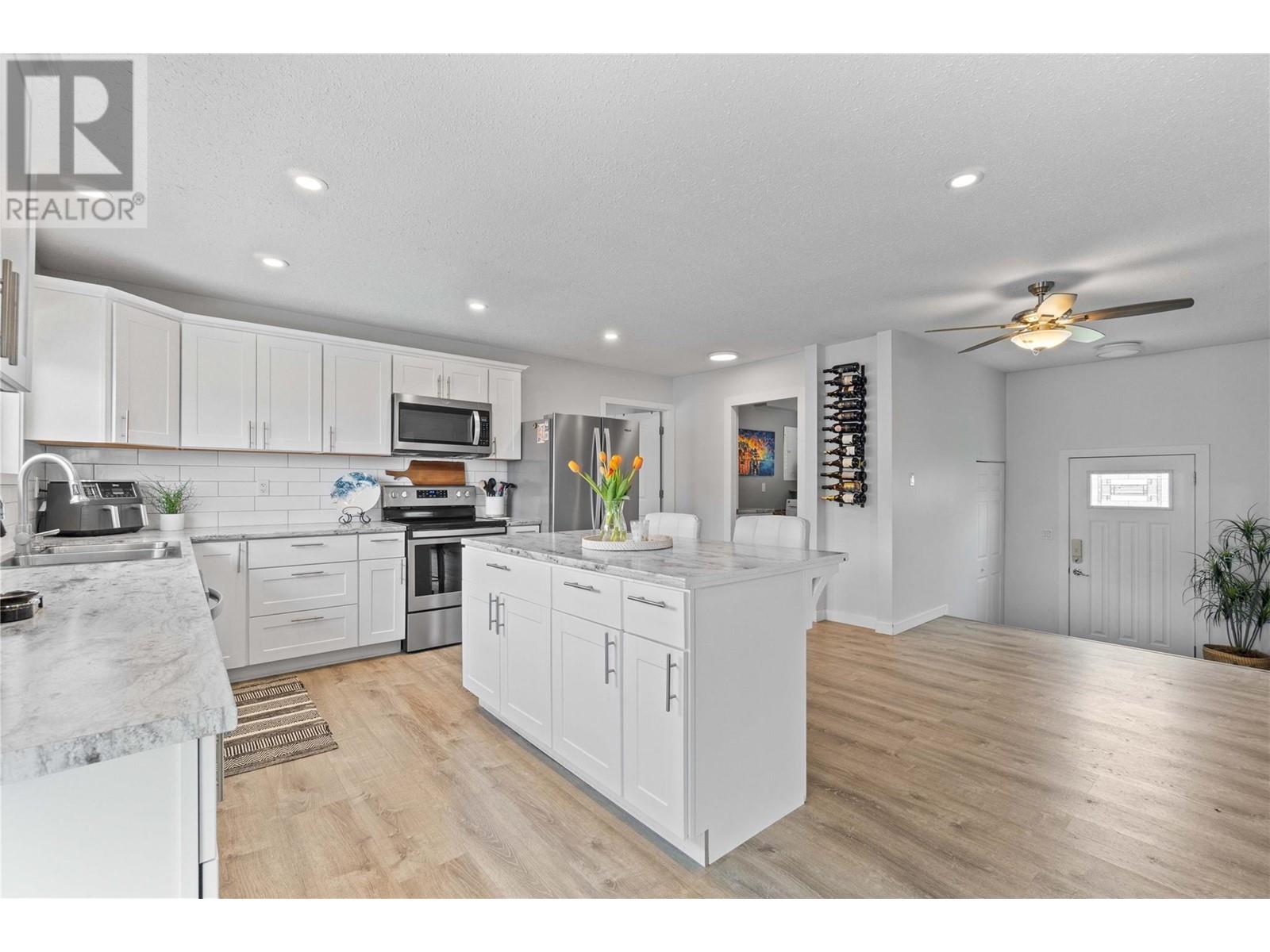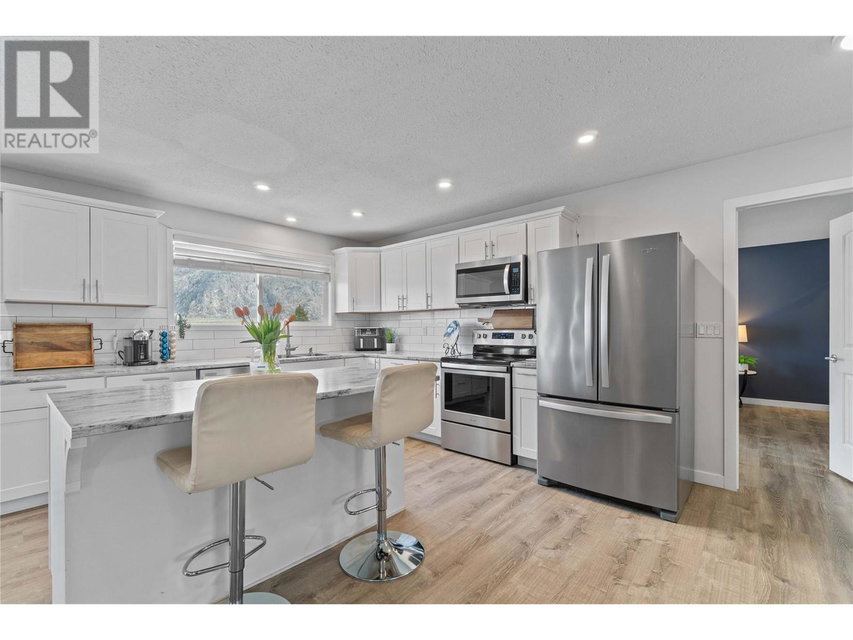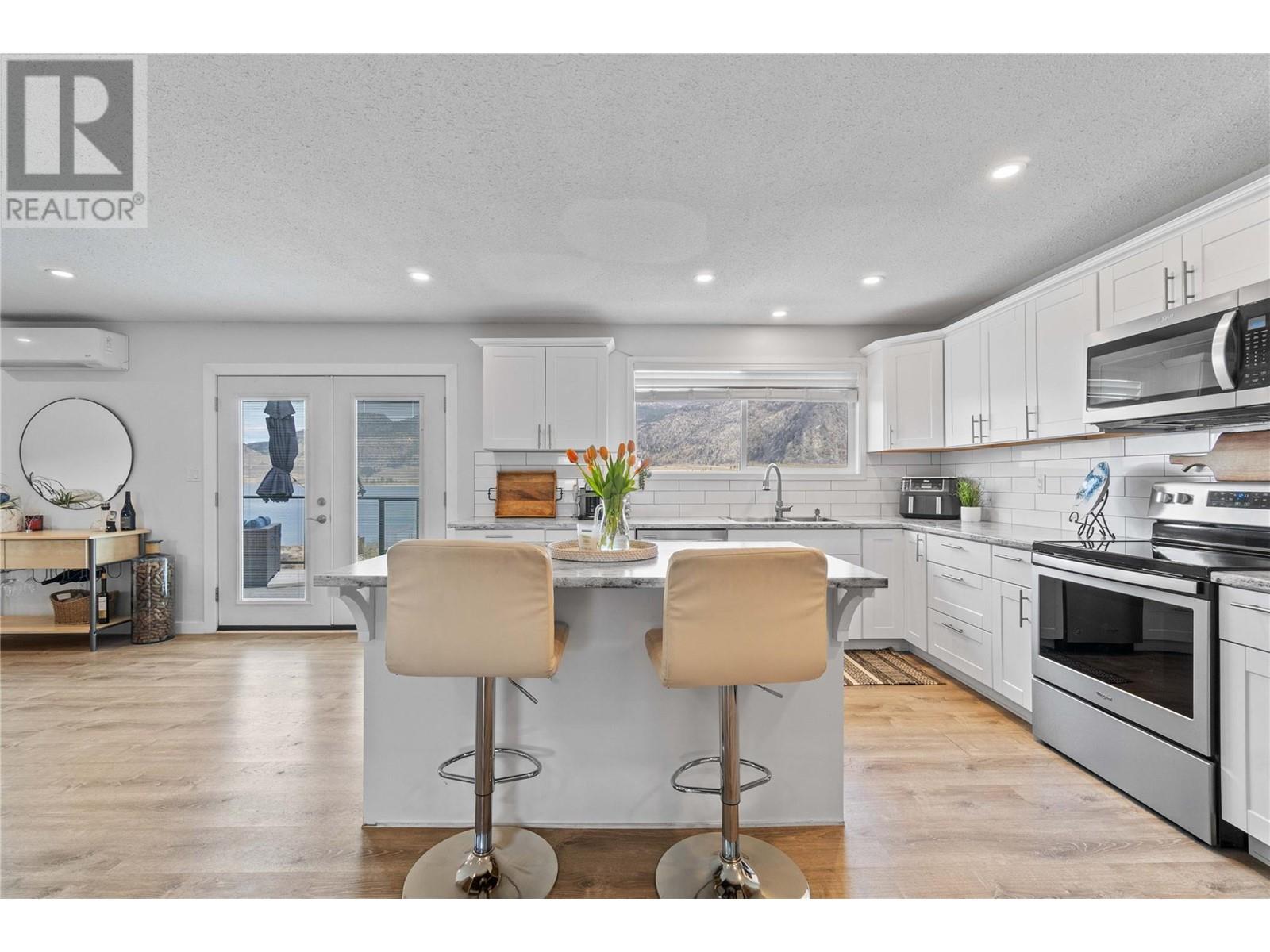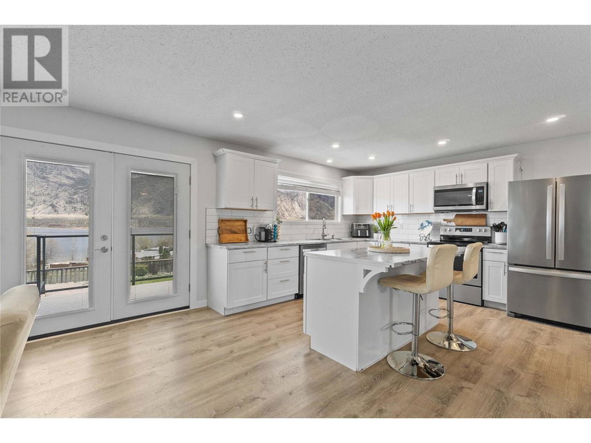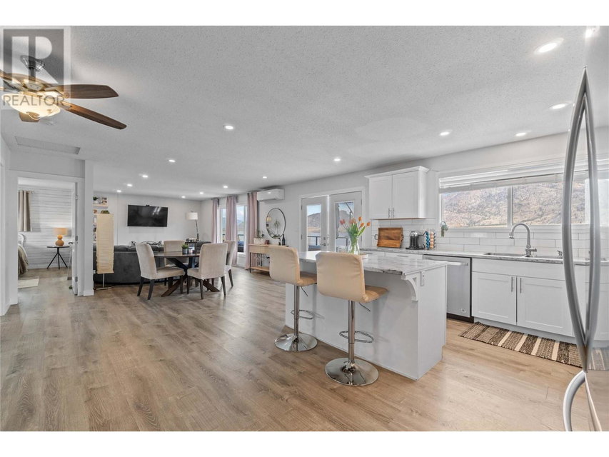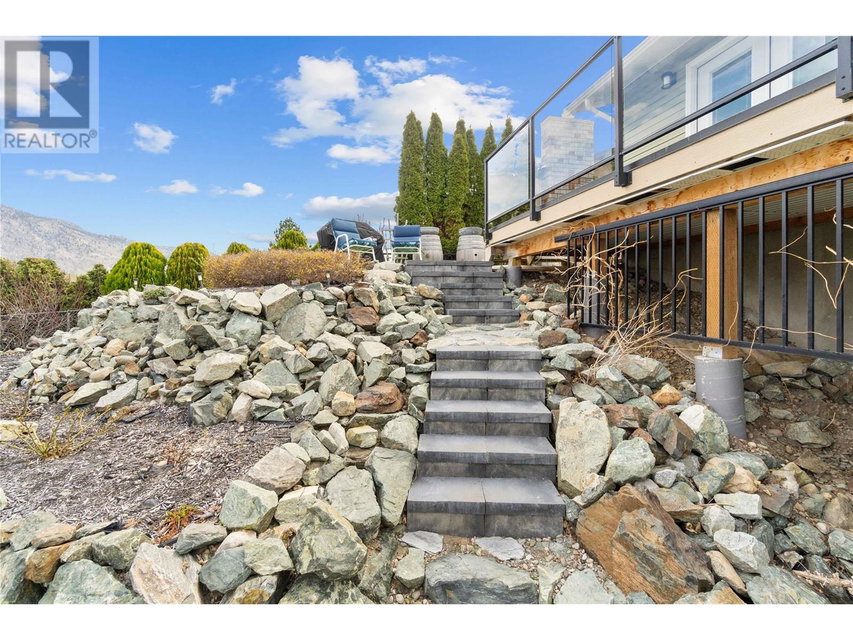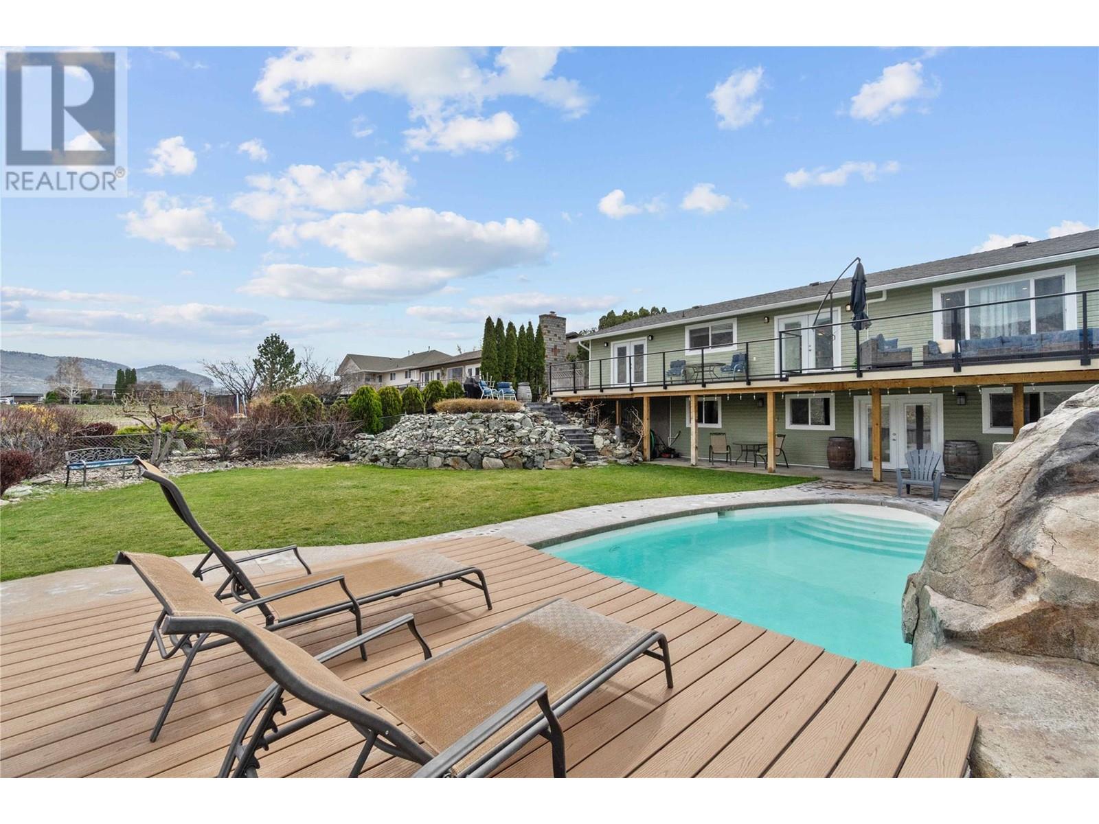 Dreaming of retiring in the Canadian desert? Welcome home to Canada’s warmest lake, Osoyoos. Lakeview living surrounded by vineyards yet steps to lake + town. Updated in 2020. 4 bdrm + 3 bath home w/pool + large yard The floorplan of this house offers flexibility with the ability to use the home as a 4bdrm + 3 bath family home or a 2bdrm + 2 bath home upstairs + 2 bdrm suite + bath downstairs. Upstairs is primary bdrm w/ensuite, laundry + walk in closet, 2nd bdrm + bathroom + Dream kitchen featuring s/s appliances, large island and endless lakeviews. Direct access of kitchen to a large lakeview deck that is ideal for hosting. Dedicted main floor laundary and storage. Downstairs is a 2 bdrm 1 bath suite with kitchen, laundry and storage. Enjoy morning sunrises and avoid the afternoon heat as this property faces East. Concrete salt water pool, grass area for the kids/dogs and room for all your garden plans. The views of the mountains, valley and lake are simply spectacular. Walk/bike to the lake, town, golf and wineries within minutes. Boat launch is 500m away. Osoyoos Lake is Canada’s warmest freshwater lake and the town is traditional Okanagan small town living meets Canadas’s best resort beach town. Retire. Relax. Rental income potential w/ basement suite or add the lower level back into the main living (stairs are still intact, just behind the wall). Easy to add a shop or garage on the 1/4 ac lot. New heat pump w/air cond. 2 gas fireplaces. Move in ready for Summer 2025. (id:17834)
