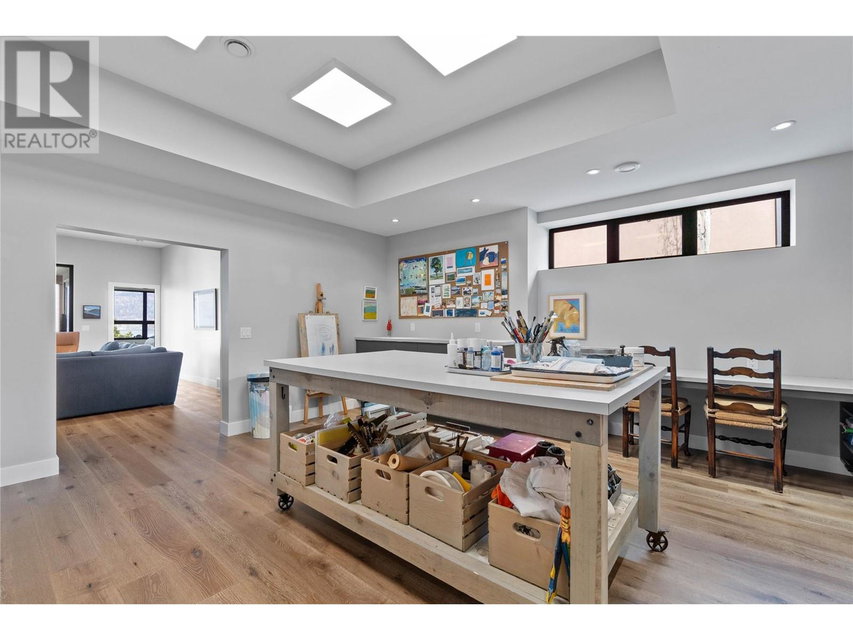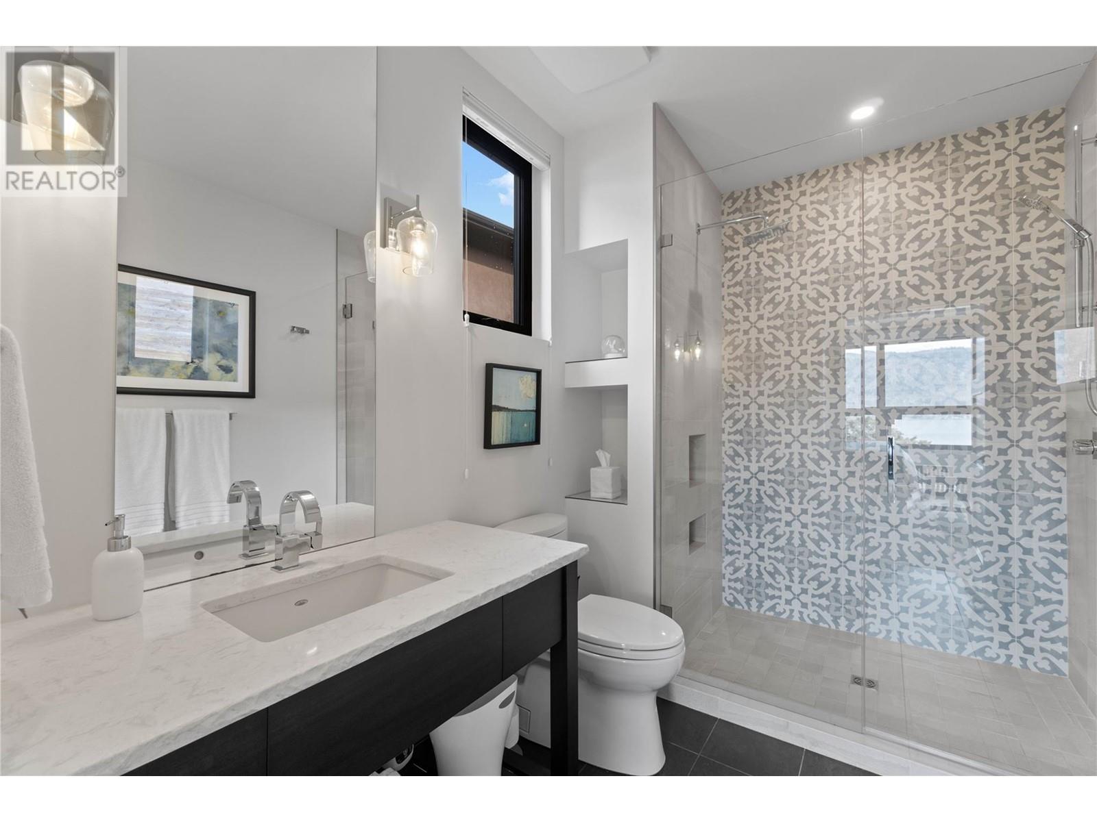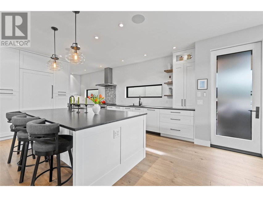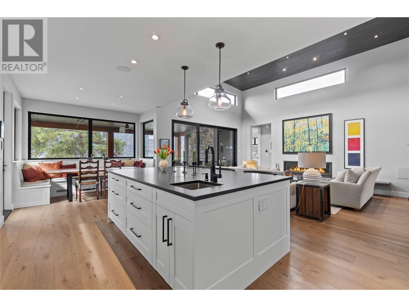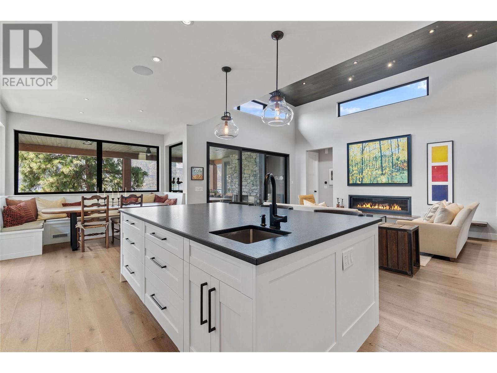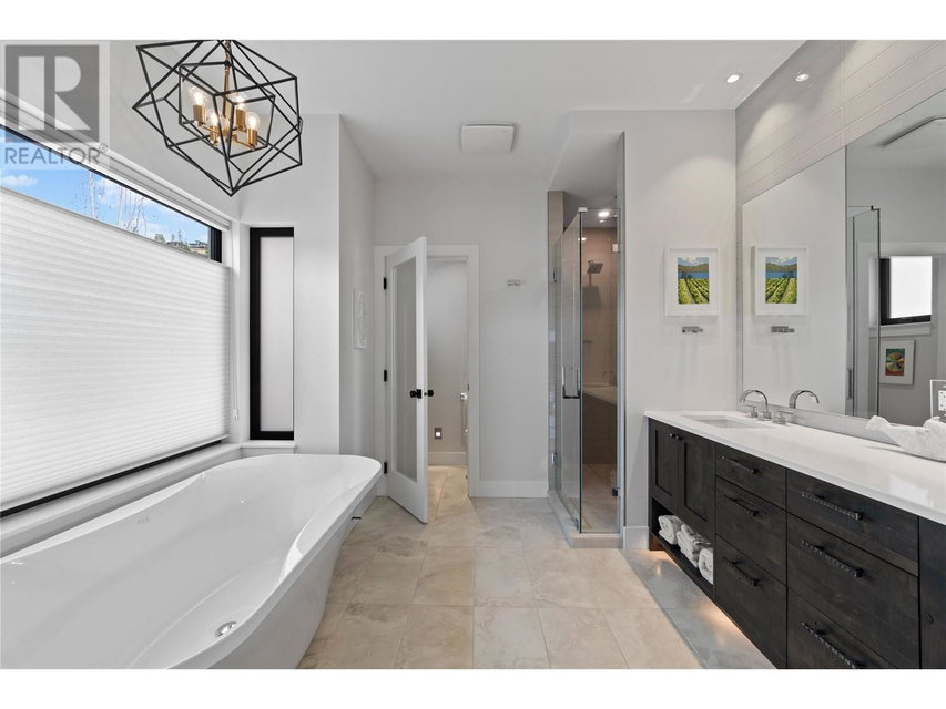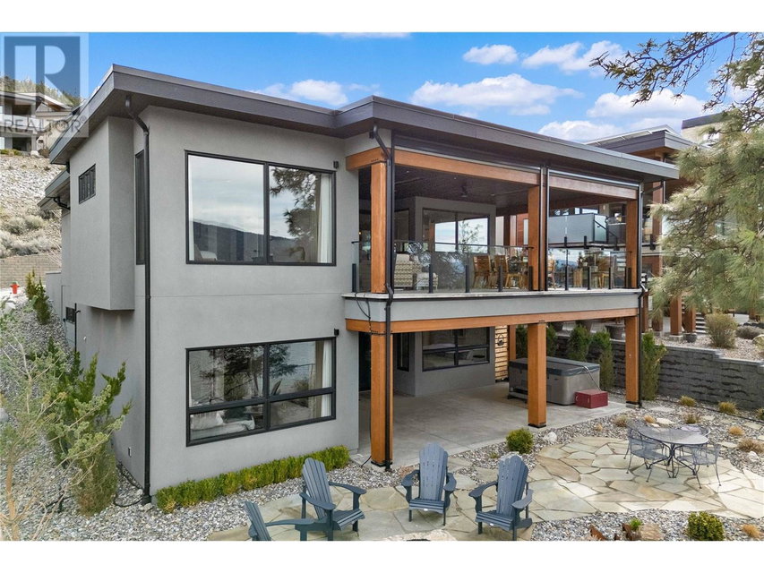 Marble Ledge. The most exclusive street: Waterside@Lakestone, Okanagan’s #1 award winning community. Custom built 4063 sq ft lake-view home. Architecture + Design v ultimate in family comfort + entertaining. Soaring wood cieling – directly to the staggering lake views. Smart kitchen w/seating for 10+ and ultimate in modern luxury appliances, Miele steam oven +Wolf range. Large counter space + hidden pantry/prep area Primary bdrm suite on the main flr w/lake views. Main flr laundry plus large office, open plan liv rm w/gas f/p. Highlights of the lower level are: 3 bdrms, 2 baths, family rm, storage, ultimate lifestyle rooms incl art studio, wine cellar, games room. Reimagine the studio into a gym, or in-law suite or 5th bedroom. 4 HVAC zones, built in speakers. Oversized 2 car garage w/ workbench area. Uppr patio is covered yr round w/ sun shades, stone gas f/p, infrared heaters, bbq +dining space for 12. Below is 2nd covered patio w/hot tub, natural rock gas fire pit for nights under the stars, a flagstone outdoor dining area and relaxing gardens. Built by the renowned Destination Homes. Includes access to the award winning amenities: The Lake Club (pool, hot tub, bbq’s, gym, meeting room), Waterside Park (Dock, beach, paddle/surf lockers, loungers, tables/pavilion), The Centre Club (gym, yoga, lounge, pool, hot tub), Benchlands Park (tennis, pickleball, bball), along w/28 kms of trails + 250 acres park. Mins to airport, wineries, golf, shops, downtown Kelowna, skiing. (id:17834)