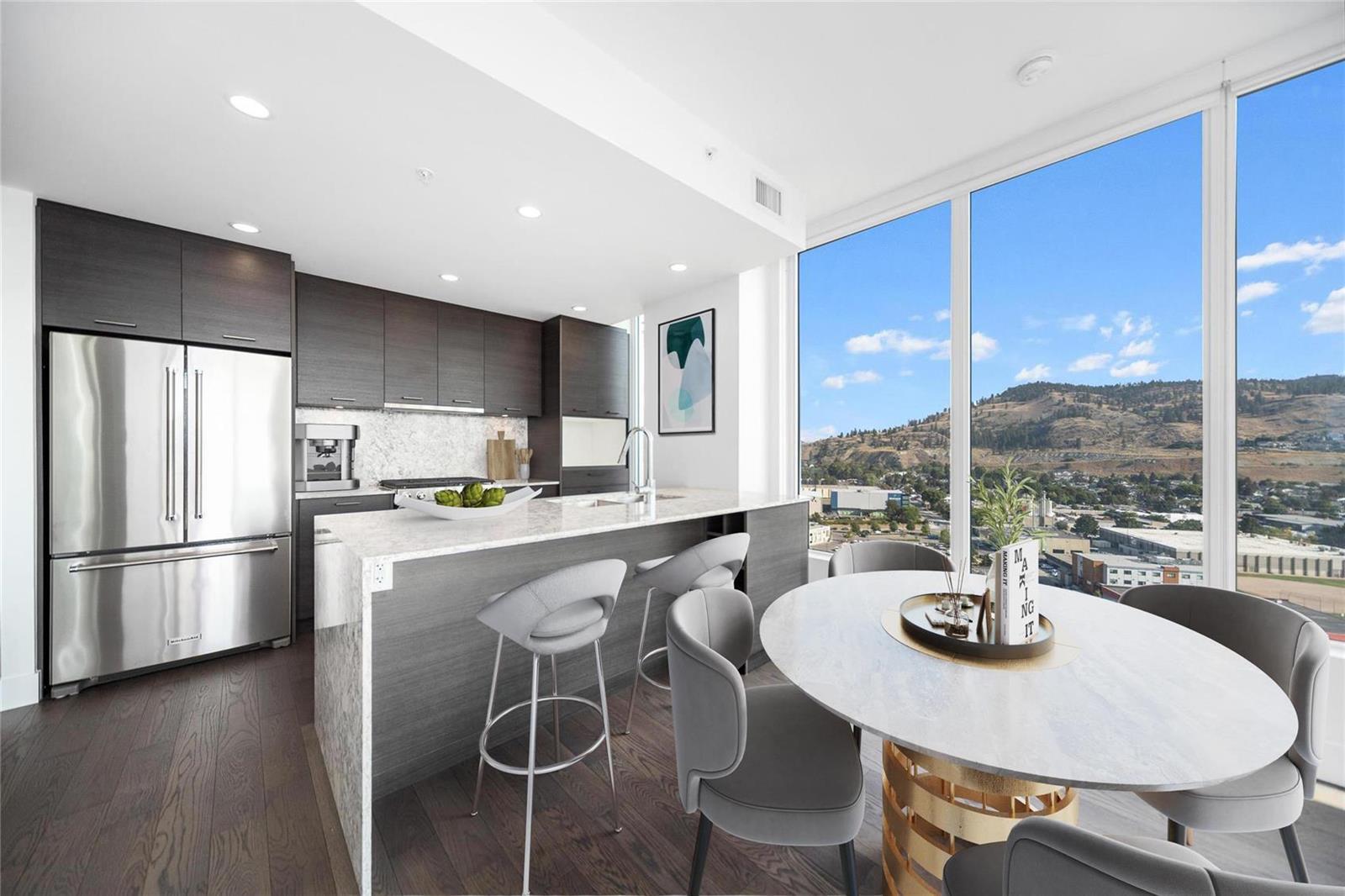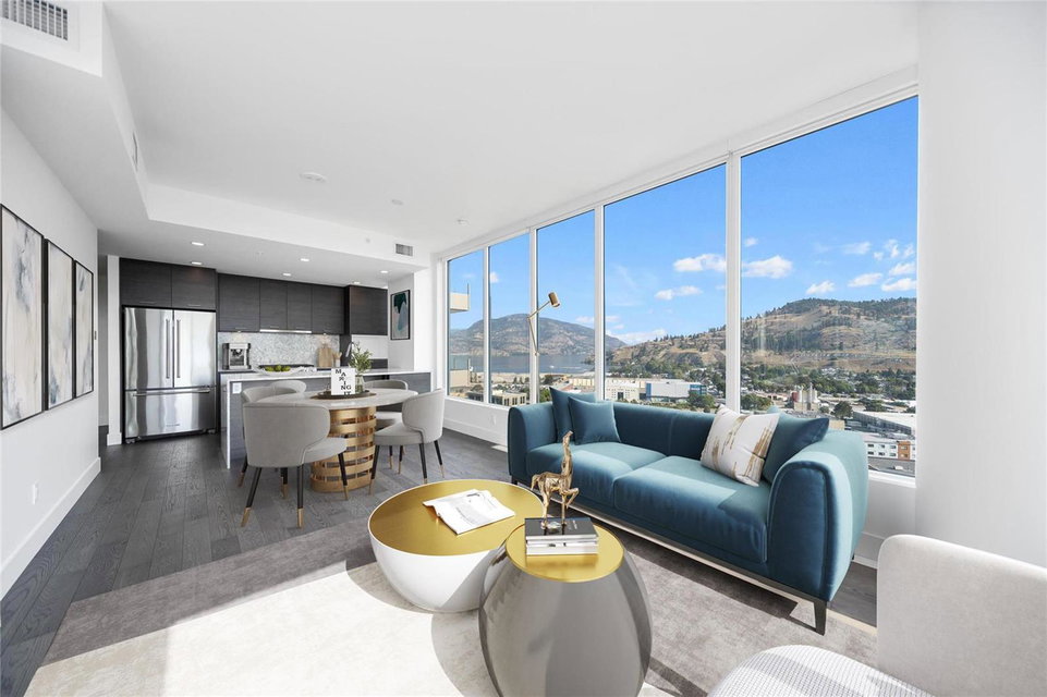 Lake views + Very affordable unit in Kelowna’s #1 new downtown development One Water Street 17th floor | 2 bdrm |Wf2 Plan | West Tower | This 966sqft 2 bdrm 2 bath Residence showcases premium finishing’s including a chefs kitchen w/stainless steel appliances and stone counters, in suite laundry, blinds, storage locker, large wrap around balcony with huge lake + city +mtn views. The Okanagan offers an all-season playground of water activities, skiing, golf, bike trails, wineries, theatres, sporting events, shopping & restaurants at your doorstep. Retail/services at street level, access to The Bench: a 1.3-acre oasis with resort-style amenities featuring two outdoor pools, outdoor lounging with fire pits, 2200 sqft health club with yoga studio, lounge area, business centre, pickleball court, dog run & guest suites. Available for immediate possession. (id:17834)