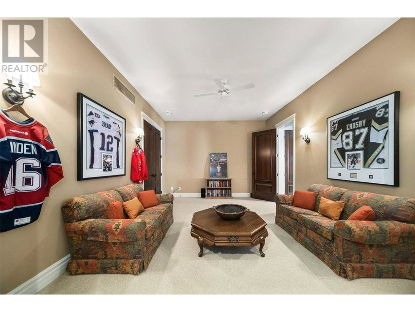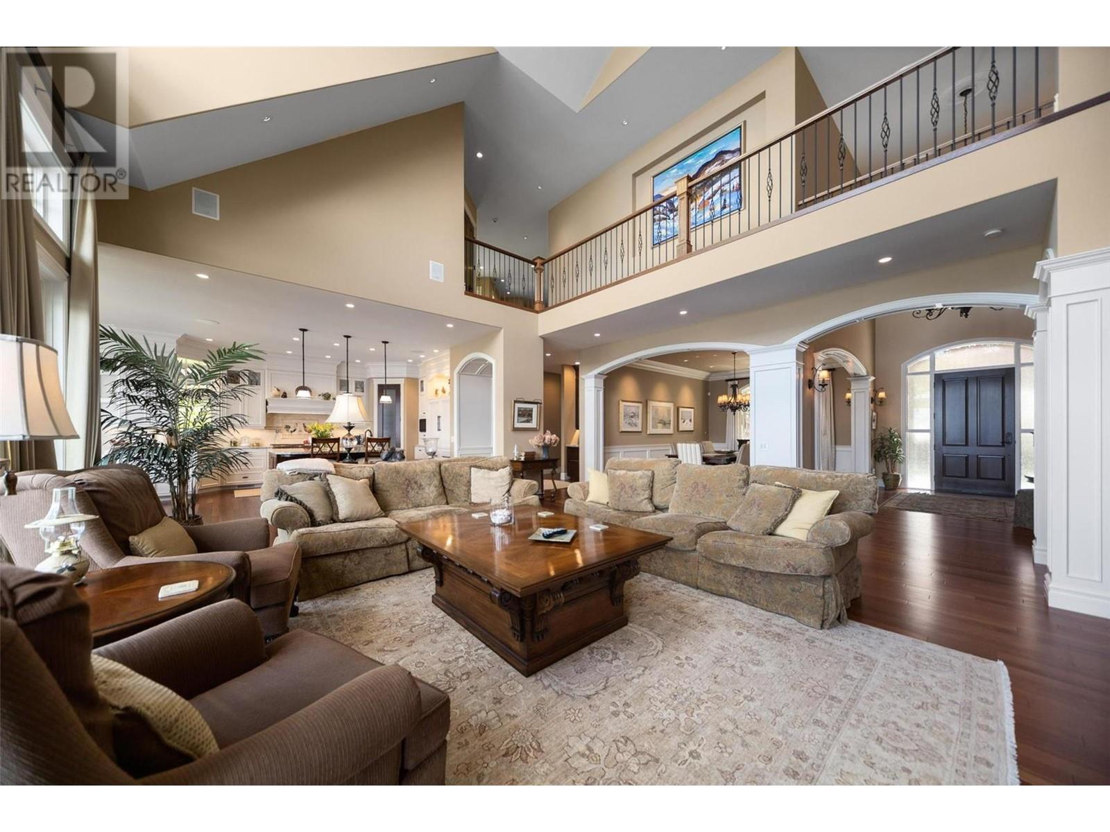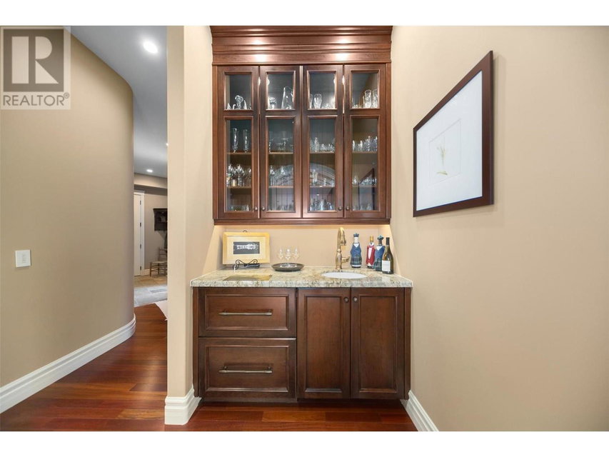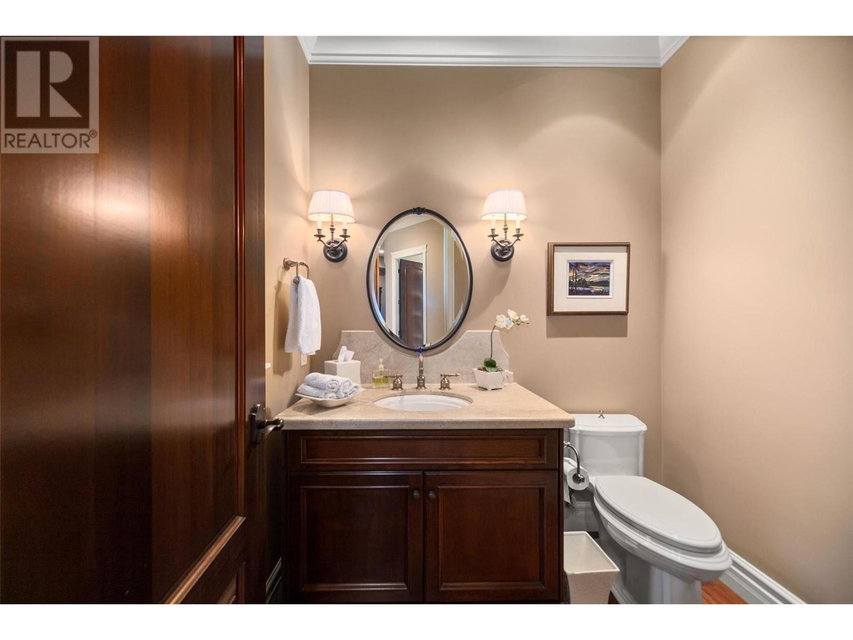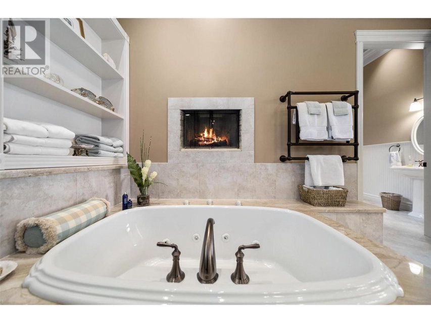 Lakefront vineyard estate home on 2.31 private acres w/160’ of sandy beach. State of the art geothermal heating/cooling and green living eco septic system. European chateau inspired boasts a new dock, elevator, wine cellar, private vineyard, office, gym + theatre. 8000 sq ft, 5 bdrm, 8 bath. Main floor primary suite w/ reading area + fireplace, luxury hotel like bath, great room w/soaring ceilings, stone fireplace and French doors that lead out to a lakefront patio w/ sunset views. The chateau kitchen w/ best in class Wolf/SubZero appliances, lakeview kitchen table along w/bar seating, formal dining room, main floor laundry and a wet bar round. The upper level w/2 large bdrms w/ensuites and huge family/guest suite w/ensuite, laundry, kitchenette. The lower level has a gym +spa bath, wine cellar, games rm, theatre, sauna, family rm and a large office w/ensuite. Elevator + accessible ramps. 4 car garage plus bonus storage. Explore your options to add a guest house. Outdoor kitchen/hot tub. Licenced dock w/power lift. Htd tile floors, Pella windows, state of the art water filtration/controls, htd driveway. Smart Lutron system w/power blinds, custom lighting, audio, alarm. Timeless design w/ tile roof, copper gutters and Kettle Valley stone exterior. A relaxing waterfall entrance. Private vineyard w/90 Chardonnay vines with room to expand vineyard. Mins to the award winning Cedar Creek + Martins Lake wineries, Bertram Park and the amenities of Lower Mission. Room for pool. (id:17834)