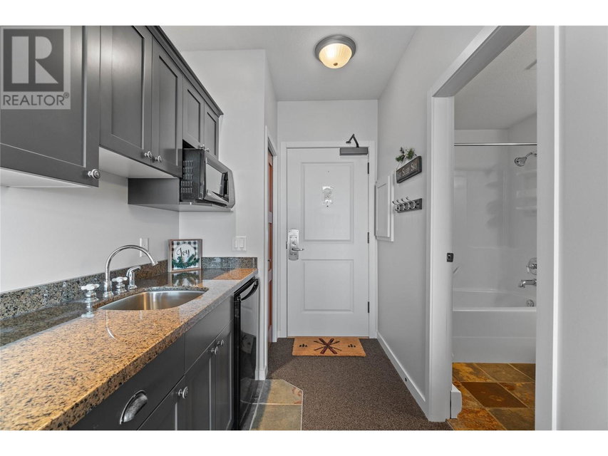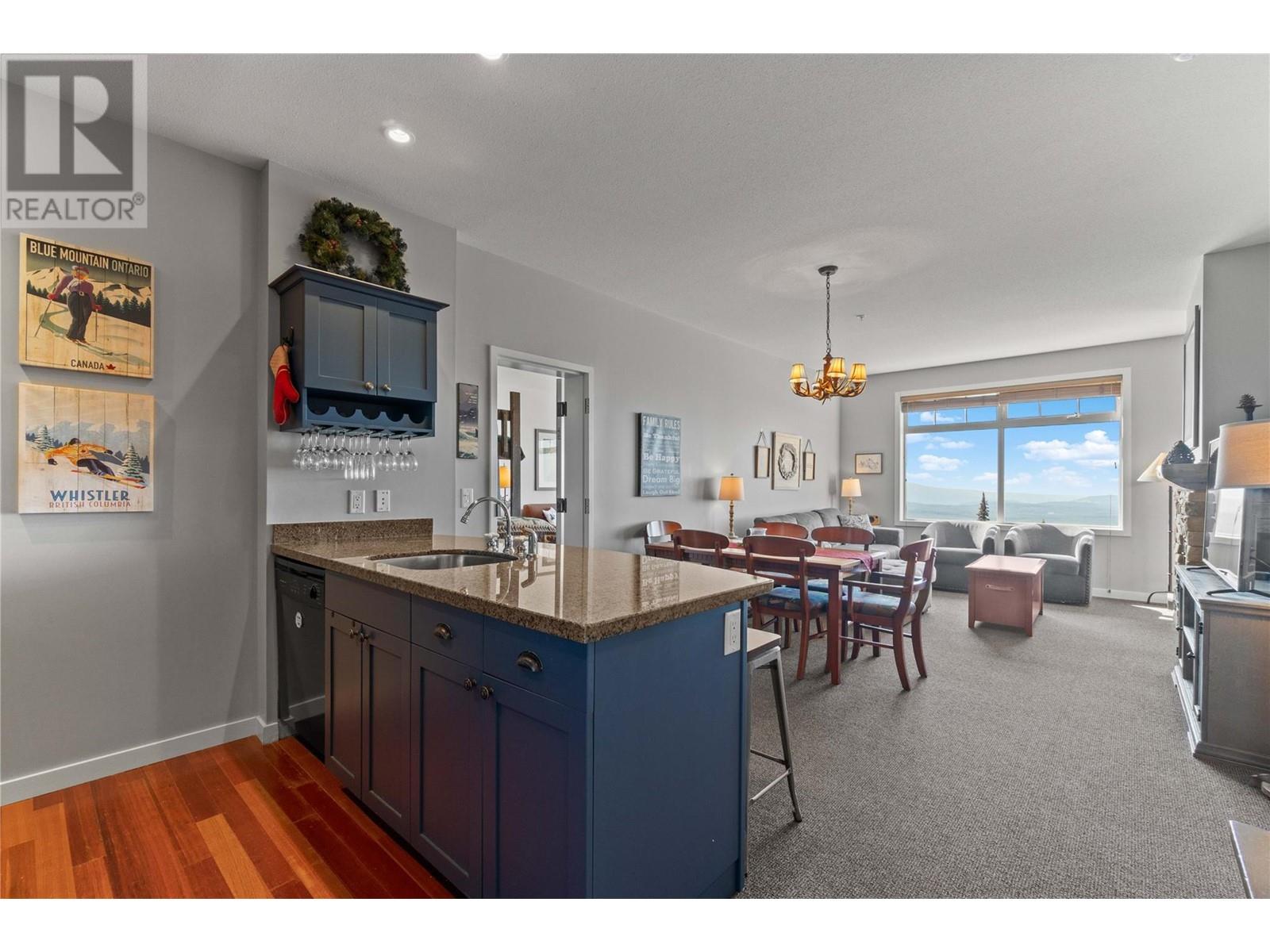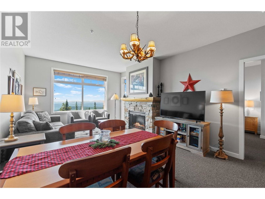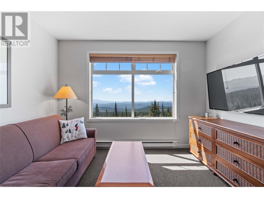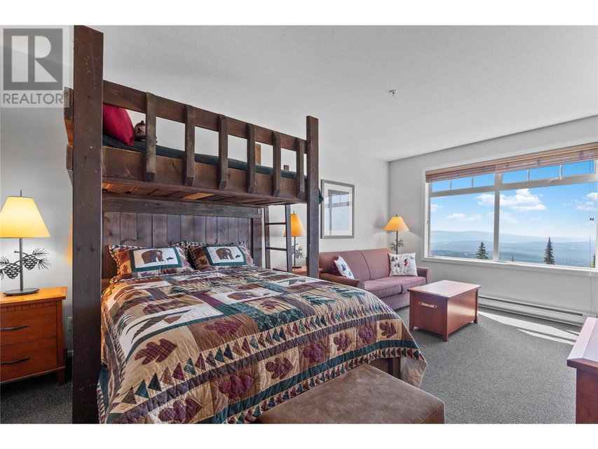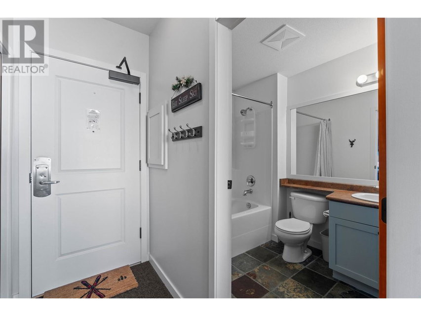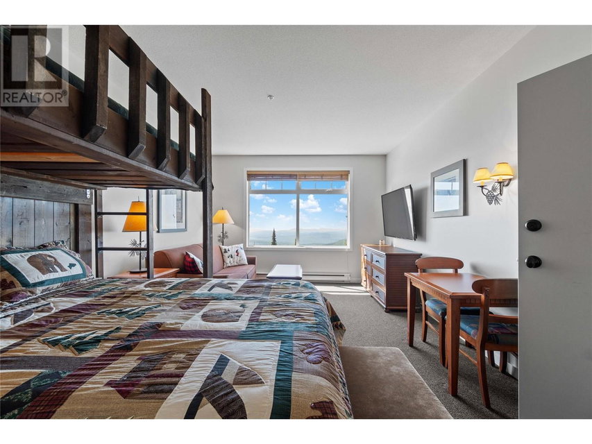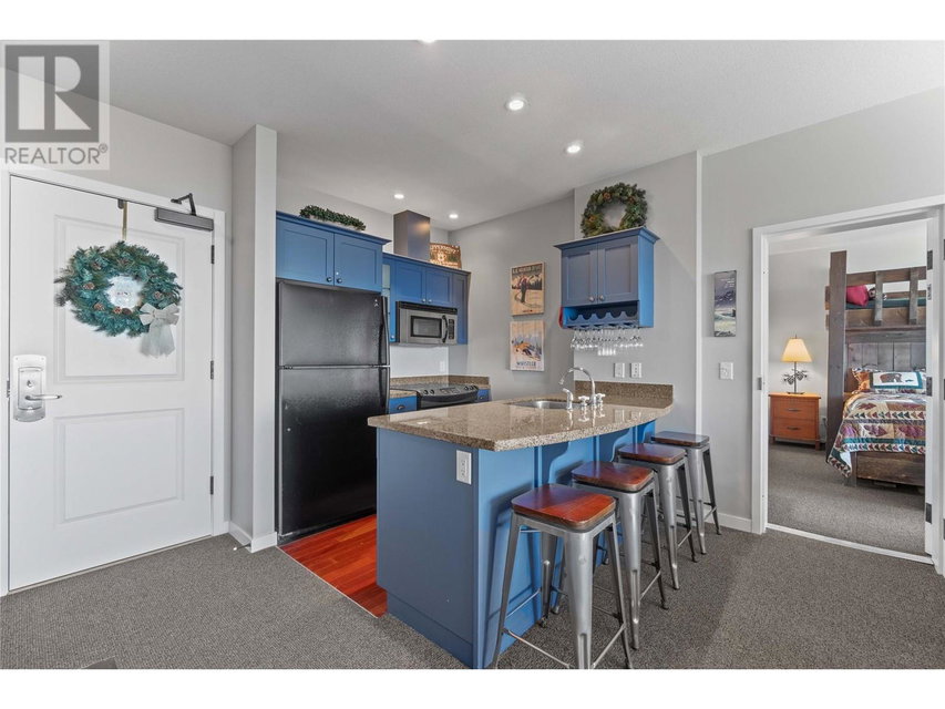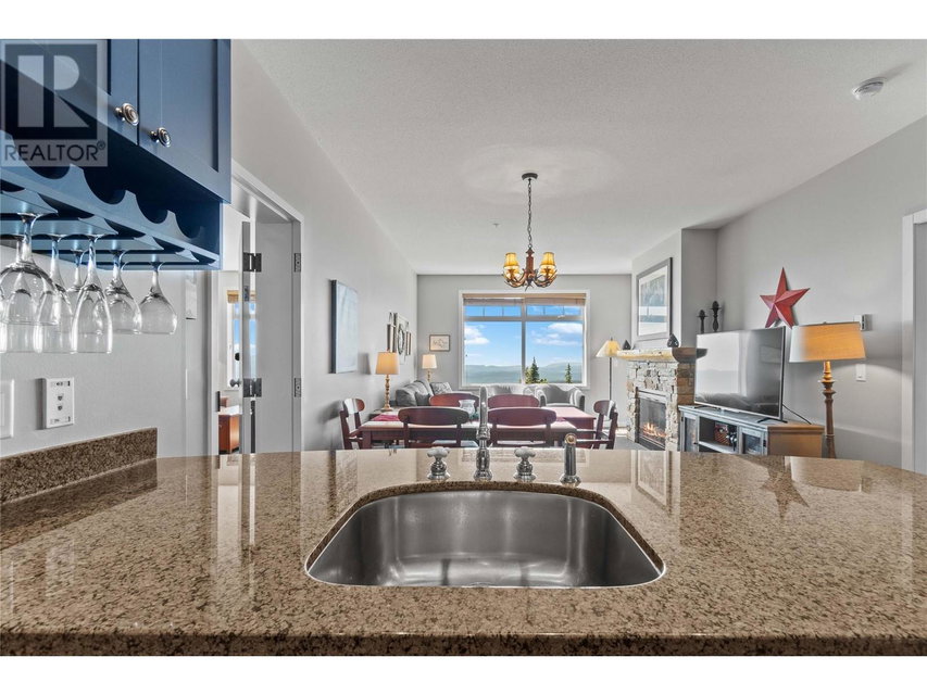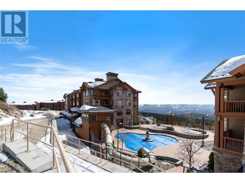 A rare unit available @ the #1 building at Big White. Sundance Resort. This Feathertop neighborhood ski in/out unit is a 2 bdrm 1020 sq ft. w/ smart lock off layout that allows for one half of the unit to be rented as a hotel room in the lucrative Big White Central Reservation Pool. OR rent both sides of unit. Ultimate location: Ski directly to 2nd floor, walk to your unit in under 30 secs or click in and ski out to the Bullet or Black Forest chairs. 2 ski lockers and 1 parking stall plus visitor parking. Simply incredible views of the Monashees, Happy Valley weekly fireworks. Use or rent the entire unit that can sleep up to 9 or rent the hotel side that sleeps 5 and offset your investment with the best rental revenue on the mountain. Sundance has resort staffed front desk, elevators, pool, waterslide, hot tub, theatre room, lounge/billiards room, gym/steam/sauna. Quality built and tastefully appointed by an interior decorator this unit is the ultimate in comfort and family memories with a cozy f/p, good appliances+granite counters, deck+bbq, 2 bathrooms and in-suite laundry. Sundance is famous for its family connections as parents mingle over apres ski drinks in the lounge and kids hang out together in the play room that offers kids activities and movie nights during the ski season. And did we mention it has a waterslide. The only bldg on the mountain that boasts true resort amenities, this unit is ready for your Big White memories. Sold, furnished and turn-key ready. (id:17834)