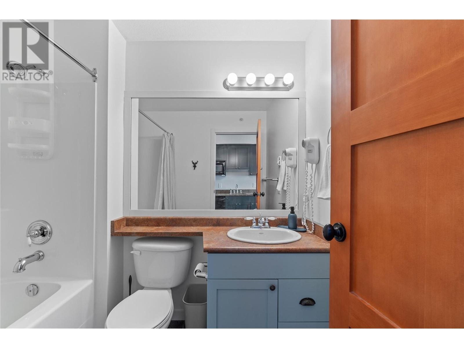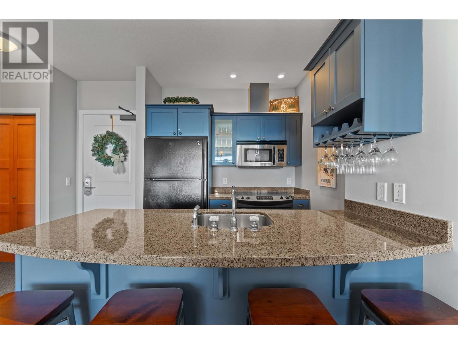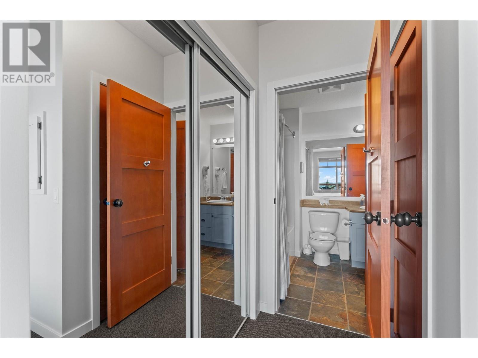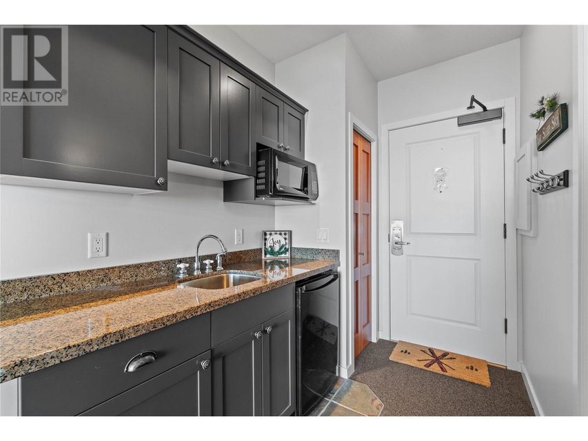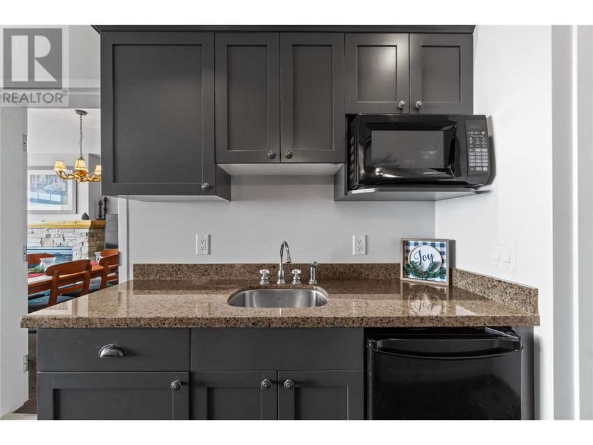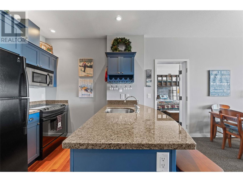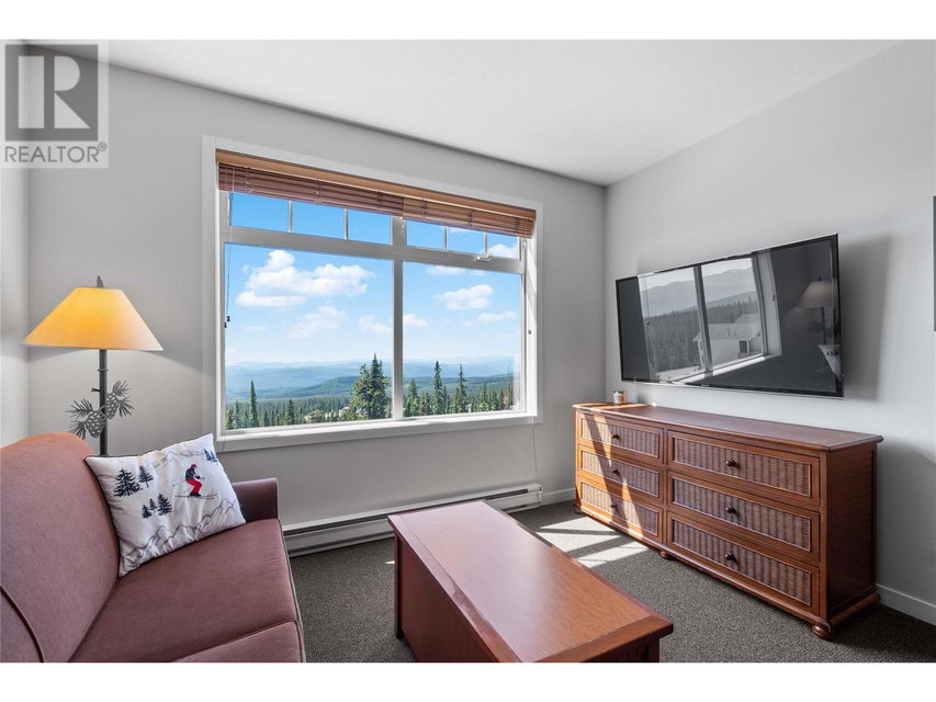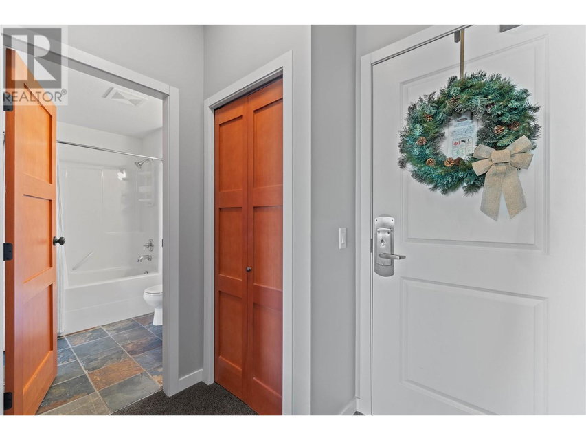 A rare unit available @ the #1 building at Big White. Sundance Resort. This Feathertop neighborhood ski in/out unit is a 2 bdrm 1020 sq ft. w/ smart lock off layout that allows for one half of the unit to be rented as a hotel room in the lucrative Big White Central Reservation Pool. OR rent both sides of unit. Ultimate location: Ski directly to 2nd floor, walk to your unit in under 30 secs or click in and ski out to the Bullet or Black Forest chairs. 2 ski lockers and 1 parking stall plus visitor parking. Simply incredible views of the Monashees, Happy Valley weekly fireworks. Use or rent the entire unit that can sleep up to 9 or rent the hotel side that sleeps 5 and offset your investment with the best rental revenue on the mountain. Sundance has resort staffed front desk, elevators, pool, waterslide, hot tub, theatre room, lounge/billiards room, gym/steam/sauna. Quality built and tastefully appointed by an interior decorator this unit is the ultimate in comfort and family memories with a cozy f/p, good appliances+granite counters, deck+bbq, 2 bathrooms and in-suite laundry. Sundance is famous for its family connections as parents mingle over apres ski drinks in the lounge and kids hang out together in the play room that offers kids activities and movie nights during the ski season. And did we mention it has a waterslide. The only bldg on the mountain that boasts true resort amenities, this unit is ready for your Big White memories. Sold, furnished and turn-key ready. (id:17834)
