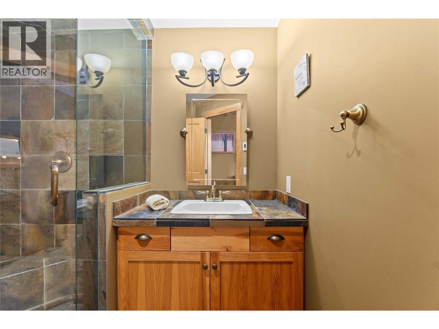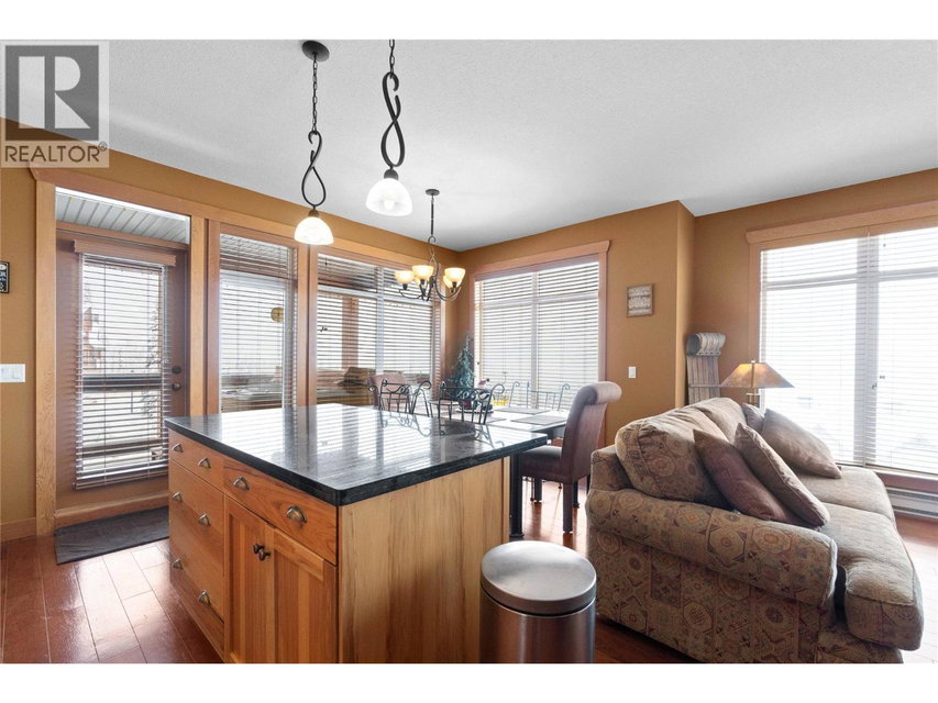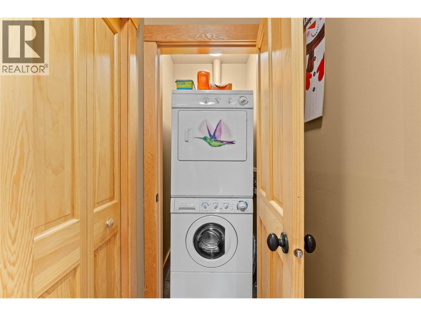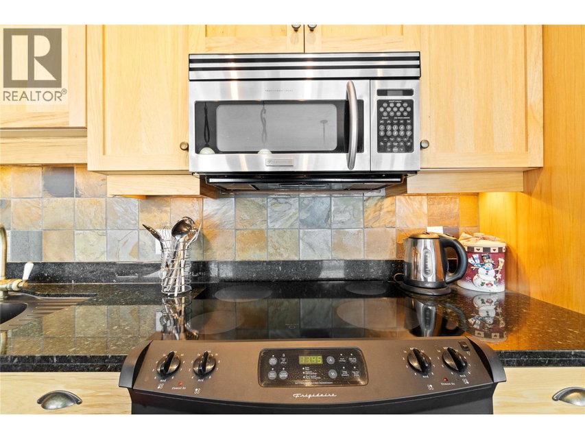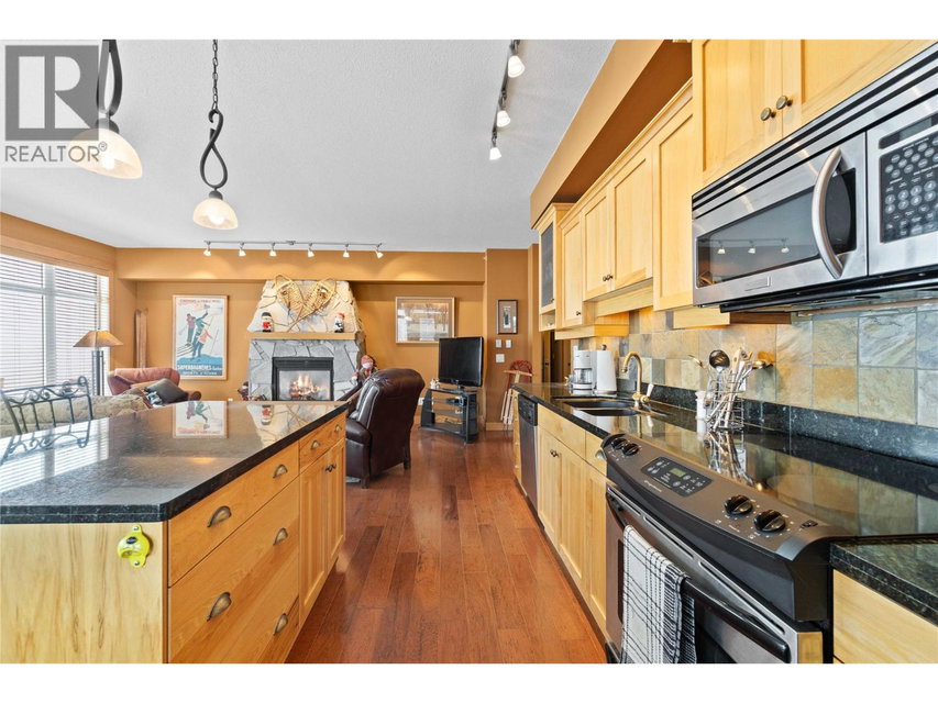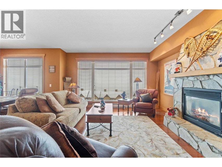 Top floor corner unit ski chalet with unobstructed views in Big White’s favorite boutique building: Glacier Lodge. This ski in/out former show home boasts 2 bd + 2 bath; has simply incredible views of the valley, Monashees and weekly fireworks. Easy access with a ski bridge 25 steps to your front door. 2 secure underground parking stalls & 2 ski storage lockers just steps from the unit. Centrally located right on Happy Valley Way you are just mins to the village or gondola. Private hot tub/balcony. In-suite laundry. Stainless appliances, granite counters. New fridge+microwave. Hardwood floors, heated slate tiles, steam shower. Spacious entry, stone fireplace and over height ceilings. Smart floor plan with space to entertain or host family. Rarely used by the Owner, the unit has never been rented, well-run strata and the unit is in excellent condition. No rental restrictions or revenue share required. Sold turn key, ready to occupy for Jan 1 with all furniture, decor and linens/sundries. Sleeps 8. Newer washer/dryer, h/w tank, vacuum and under-cabinet lighting. Measurements are approx. (id:17834)