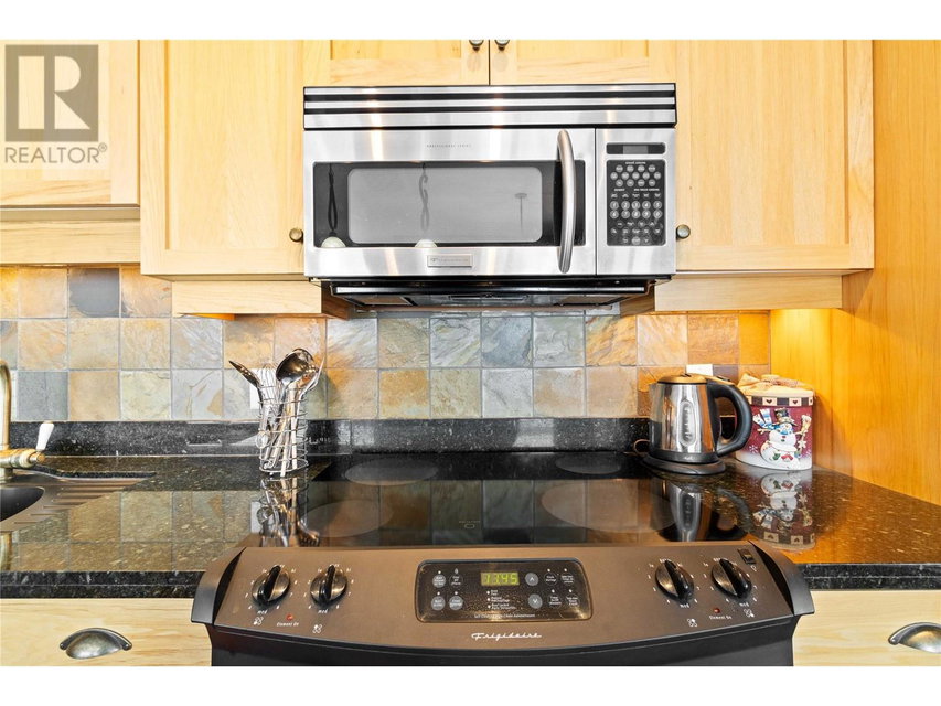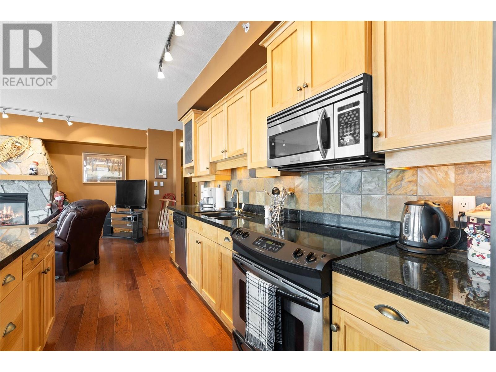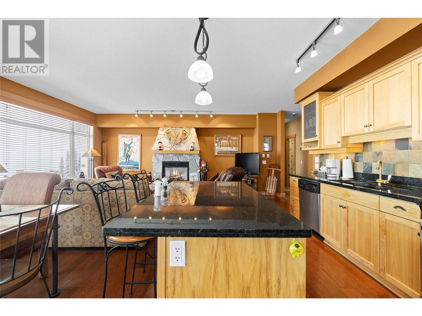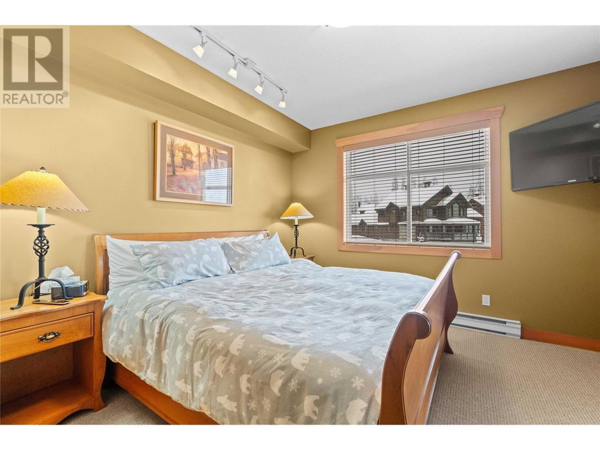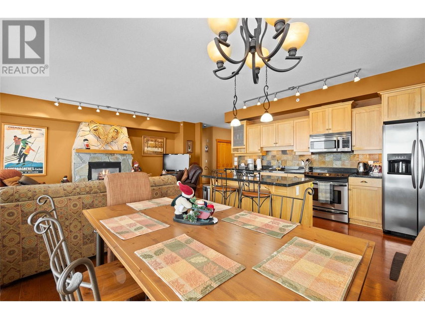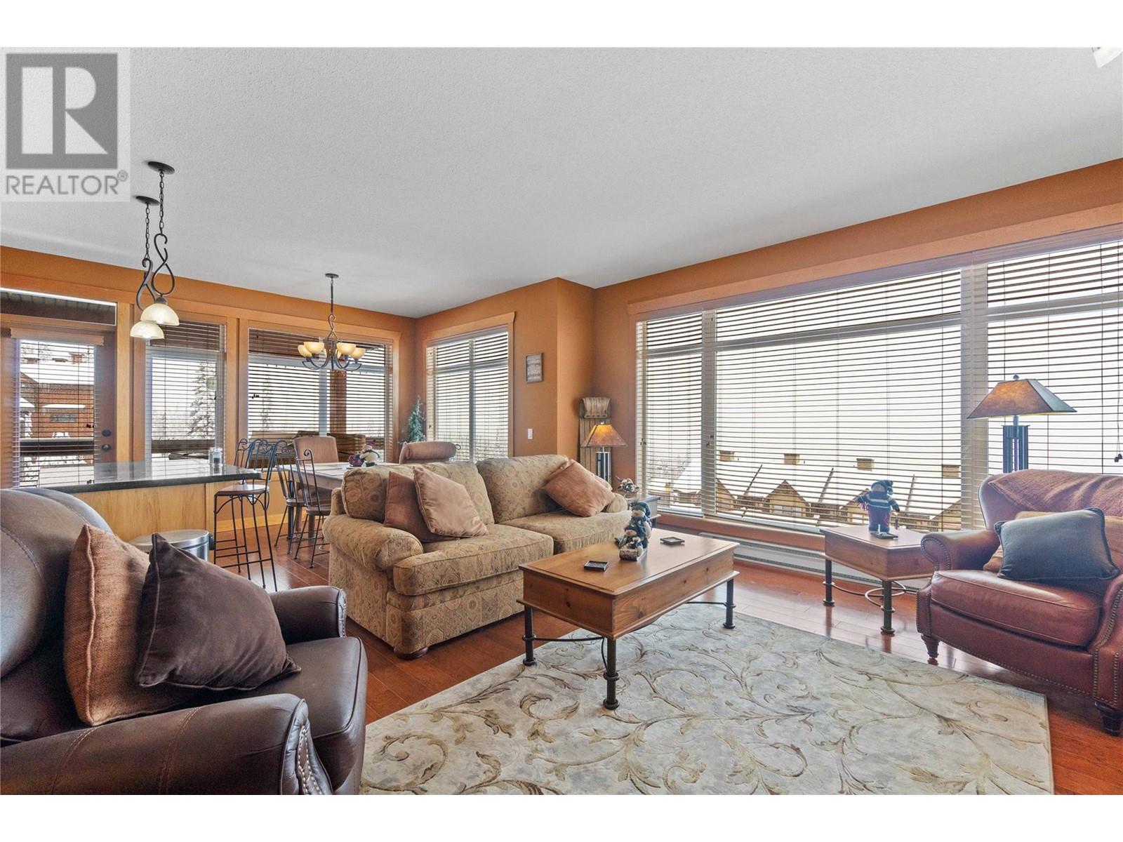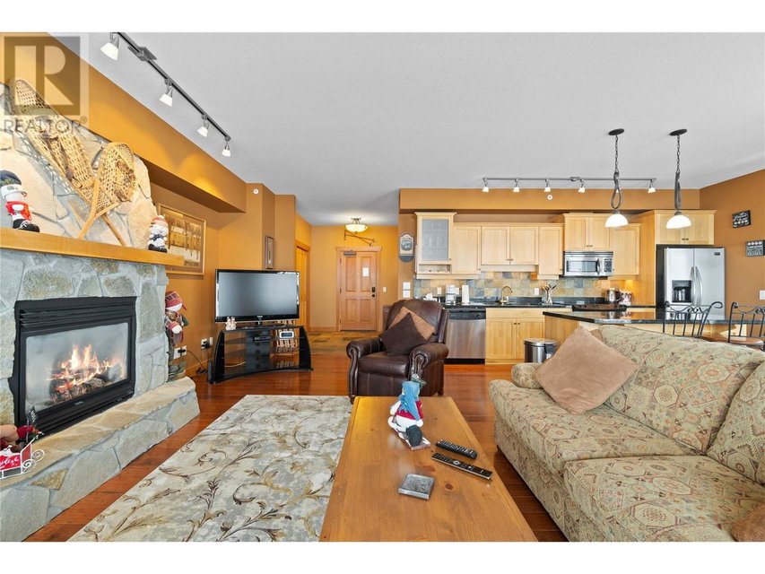 It’s finally here. Top floor corner unit ski chalet with unobstructed views in Big White’s favorite boutique bldg: Glacier Lodge. This ski in/out former show home boasts 2 bd + 2 bath ;has simply incredible views of the valley, Monashees and weekly fireworks. Easy access with a ski bridge 25 steps to your front door. 2 secure underground parking stalls & 2 ski storage lockers just steps from the unit. Centrally located right on Happy Valley Way you are just mins to the village or gondola. Private hot tub/balcony. In-suite laundry. Stainless appliances, granite counters. New fridge+microwave. Hardwood flrs, heated slate tiles, steam shower. Spacious entry, stone fireplace and over height ceilings. Smart floor plan with space to entertain or host family. Owner occupied, the unit has never been rented, well run strata and the unit is in excellent condition. No rental restrictions or revenue share required. Sold turn key ready to occupy for Jan 1 with all furniture, decor and linens/sundries. Sleeps 8. Newer washer/dryer, h/w tank, vacuum and under cabinet lighting. Measurements are approx. (id:17834)