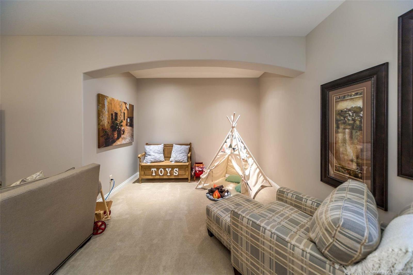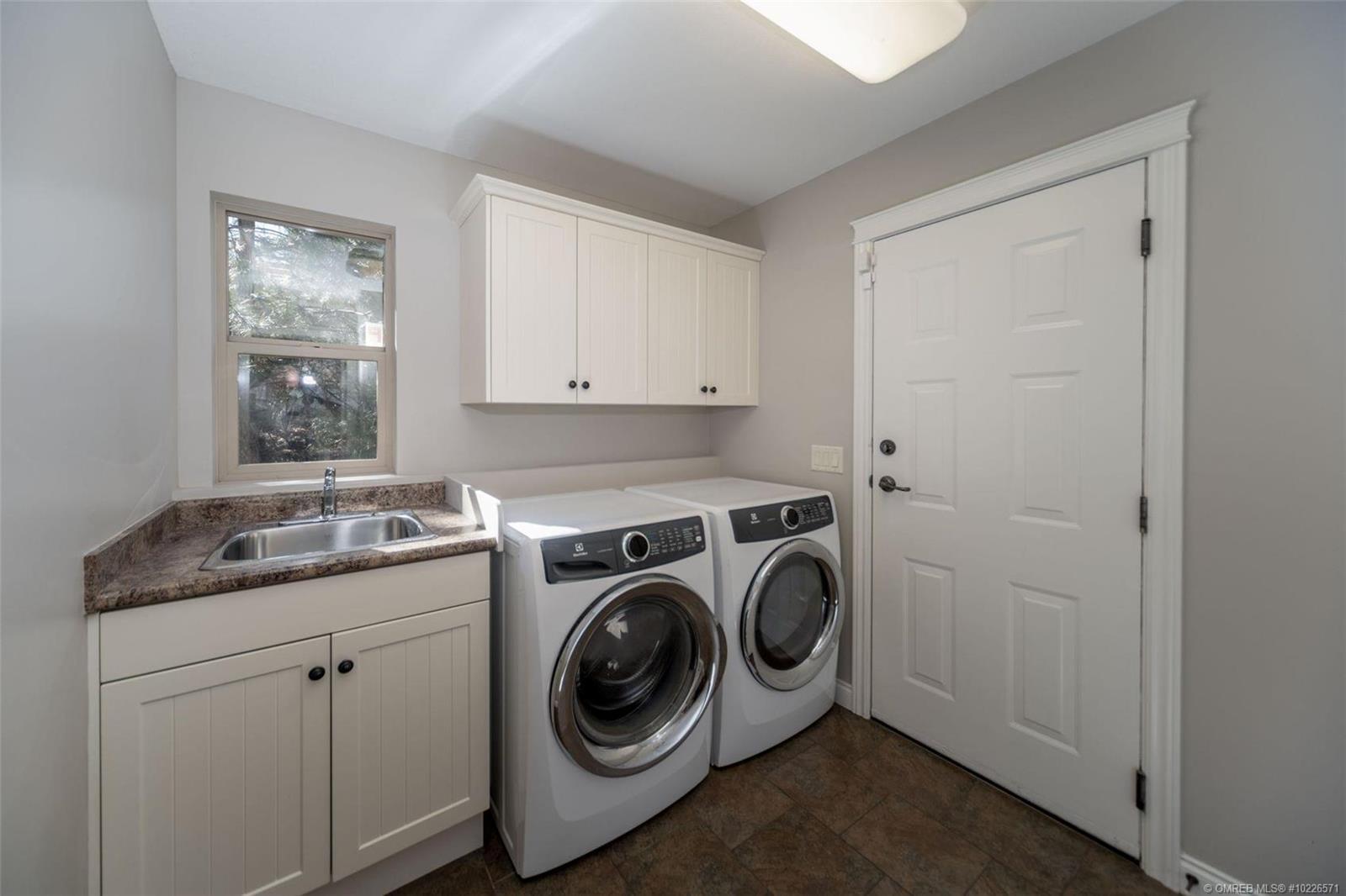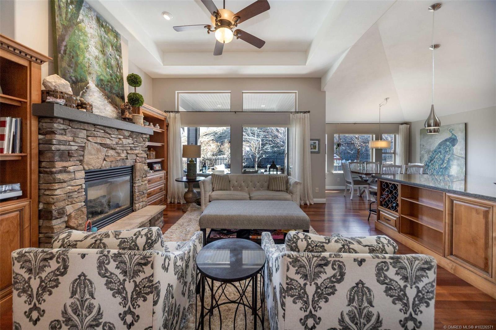 Charming family home in Kelowna’s #1 family neighborhood Kettle Valley . Quality built with 4 bdrms, 3 baths + den. Private pool sized yard that backs onto Quilchena Park (spray park, playground, tennis and acres of space). Smart layout with spacious master suite on the main along with an office and 2nd light filled bdrm and full 2nd bathroom. Soaring ceilings in the living rm and chefs kitchen w/ granite counters, detailed wood cabinets, pantry and gas/stainless appliances. Hardwood floors, gas f/p with custom rock/mantle, new washer dryer in the laundry room. 2 car garage with storage for the toys and a recently installed EV charger. Lower level features 2 large bdrms, full bathroom, gym/hobby/media room, family room with kids play area, wet bar and ample storage. Walk to Chute Lake Elem, parks, shopping, trails and a 2 min drive to the beach/lake and wineries, shopping and schools. (id:17834)
