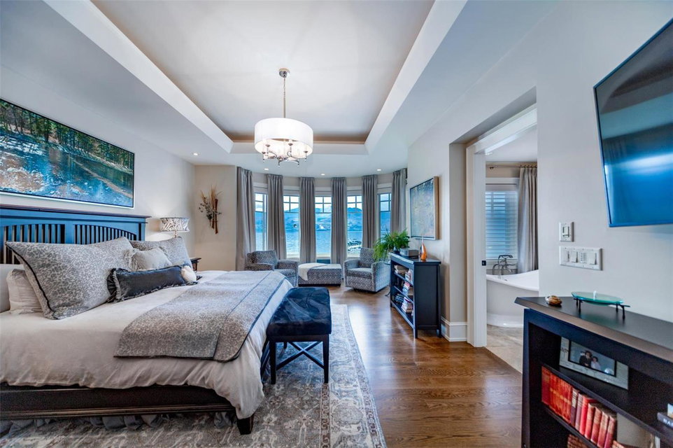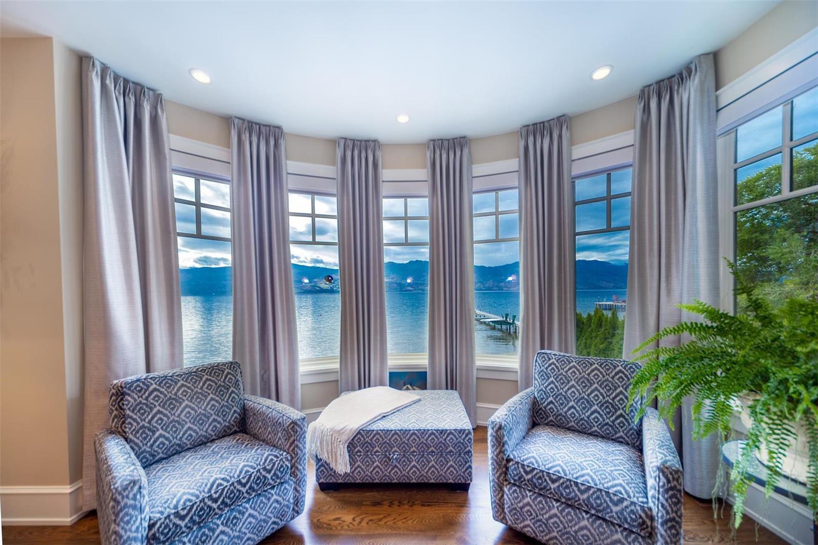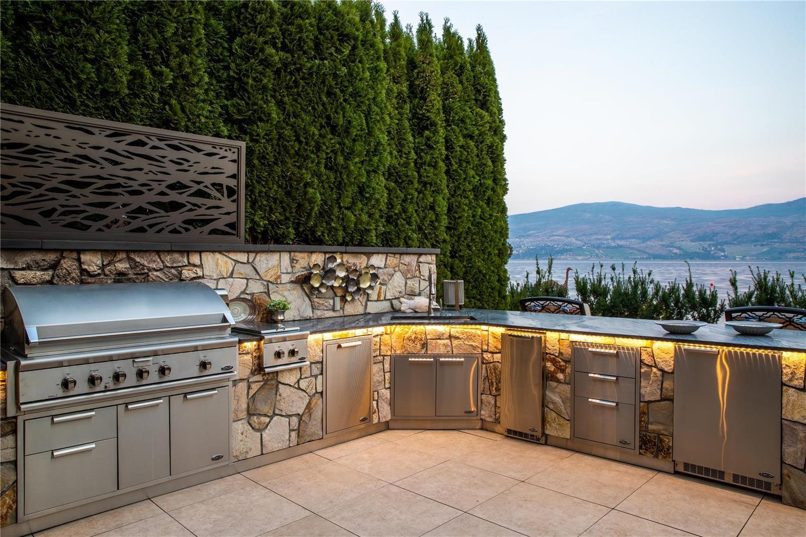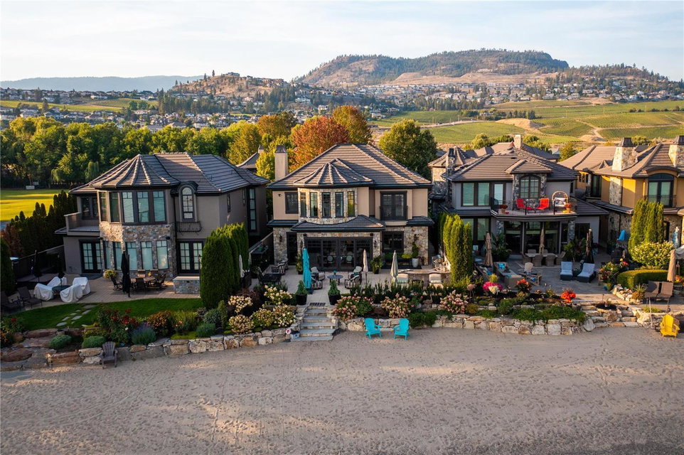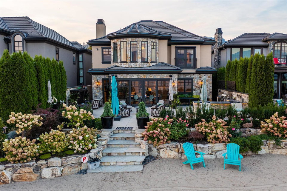 A luxurious lakefront home in the exclusive gated community of Green Bay Landing. Recently updated with exquisite luxury hotel like finishes throughout. This 3900 sq ft 4 bdrm + 4 bath custom built luxury home is the ultimate in lock and leave beachfront living. Indoor/outdoor flow with 3 sets of doors opening onto an incredible private patio featuring a stone gas f/p, outdoor kitchen, herb garden and breathtaking lake views. Private deep water boat slip w/lift + Sea Doo lift in your own marina is steps from your door across 50 of incredible, flat sandy beach. Green Bay Landing is the #1 gated community in West Kelowna with amazing neighbours and two of the best wineries/restaurants next door (Mission Hill, Quails Gate) with many more to explore in the neighborhood. The upgrades are a builders or engineers dream and include; new plumbing, custom cabinetry, granite counters, chefs appliances, flooring featuring limestone and oak, millwork, mouldings, light fixtures. Master suite with spa bath, walk-in closet, 3 guest bdrms each with their own ensuite or covert one into a home gym. Spacious office/man-cave, wine cellar, butlers pantry and mudroom. Oversized htd double garage with wonderful storage. Smart lighting/speakers, 4 zone heating/cooling, in-floor heat, alarm w/cameras make this house the ideal 2nd home or secure family home. (id:17834)