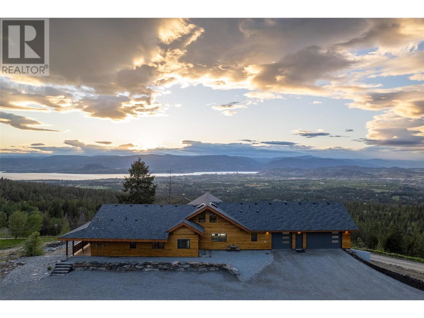 Your dream acreage w/jaw dropping lake views + just minutes from Kelowna’s vibrant city life. Your own private 12 acres with easy access, new 28X38 shop and an open concept main floor on your wish list? 4 bdrm + 4 bath modern post & beam custom home has it all, including an in-law suite. 4100 sq ft plus bonus space suspended under the garage. Highlights + updates include, soaring ceilings in the great room, radiant heat throughout, a/c, chefs appliances, oversized kitchen island, custom wood cabinets, h/d floors, smart lighting, new washer/dryer, wine room, 3 car garage + huge shop. And did we mention the views, 180′ views of the lake, city, mtn and valley below. Newly landscaped backyard with pond, grass for the kids+dogs. Suspended slab in basement ready to build a studio, car storage or additional sq footage. Surrounded by nature. Backs onto Myra Canyon Parlark. Minutes to Hiking, biking, golf, wineries, orchards . 8 mins to a great school+park. Room for all the toys including an RV hookup. 1350 sq ft Wrap around-deck with integrated infrared heaters + speakers. Good water, power w/ backup generator, + well maintained septic and mechanical. Low maintenance+fire smart irrigated landscaping. Fenced. Country living with access to all Kelowna has to offer. Dont miss your chance to make everyday a vacation day with sunset lakeview you’ll be proud to share on Instagram. (id:17834)
