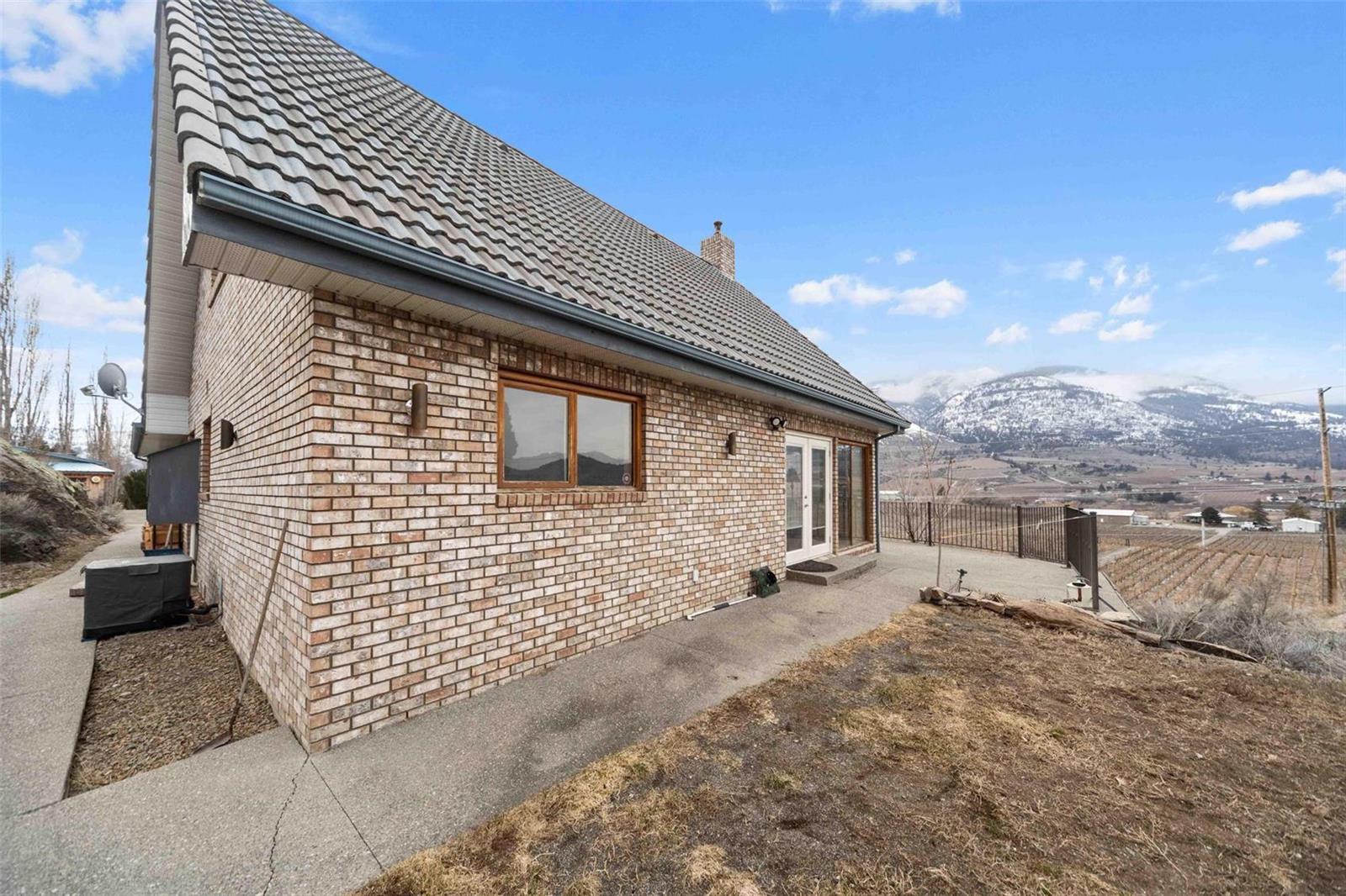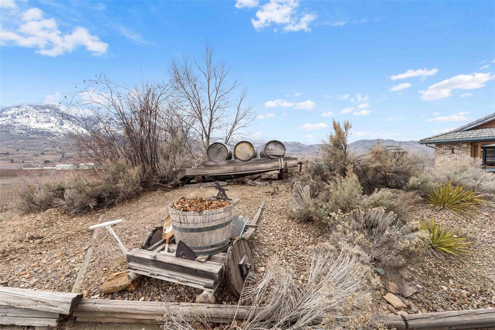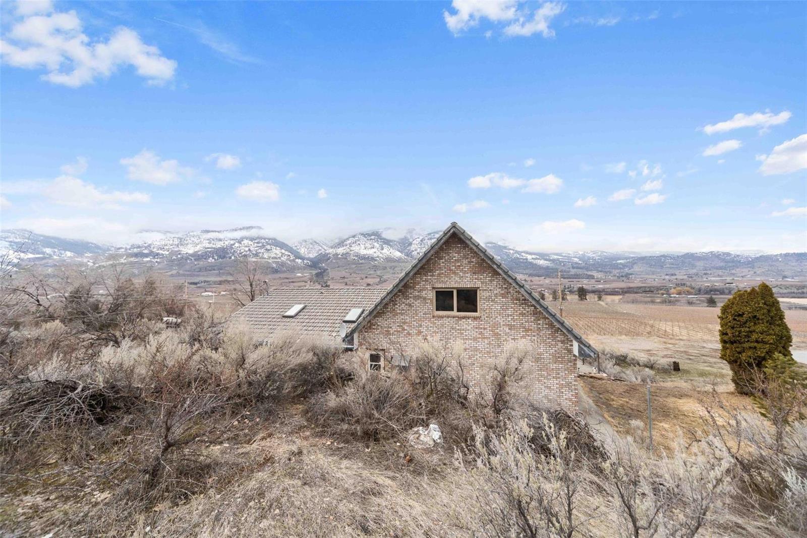 Dream retirement or vacation escape in the heart of Canada’s wine capital, Oliver, BC. 4 mins to Area 27 Racetrack and 10 mins to Osoyoos. Private vineyard view home on the famous Black Sage Rd. Car collectors + mechanics dream w/large 30×70 htd shop/garage w/ car hoist and tools, including built in air compressor. 2 private acres with a charming 3bdrm+3 bath brick house with many updates. Park-like irrigated grounds with beautiful trees, ancient granite rocks form the hillside and room for vines or an additional garden below the house. Backs onto protected Osoyoos Indigenous land with regular sightings of BigHorn Sheep, deer, wild horses, and an amazing variety of birds. Open concept kitchen and light filled great room with soaring ceilings + wood burning f/p. South-west facing wrap around deck with bbq, hot tub perfectly situated for spectacular sunsets. Mins to Burrowing Owl, Black Hills, Phantom Creek wineries and steps to the top 3 vineyard restaurants in the South Okanagan. No rental restrictions , explore summer short term rental income potential @$10,000-$12,000/mo. Room to park all your toys and even RV power, water and septic. Mins to the town of Oliver. Feel the stress melt away as you enter the winding private driveway and settle into the views of the beautiful mountains, valley + vineyards below. (id:17834)