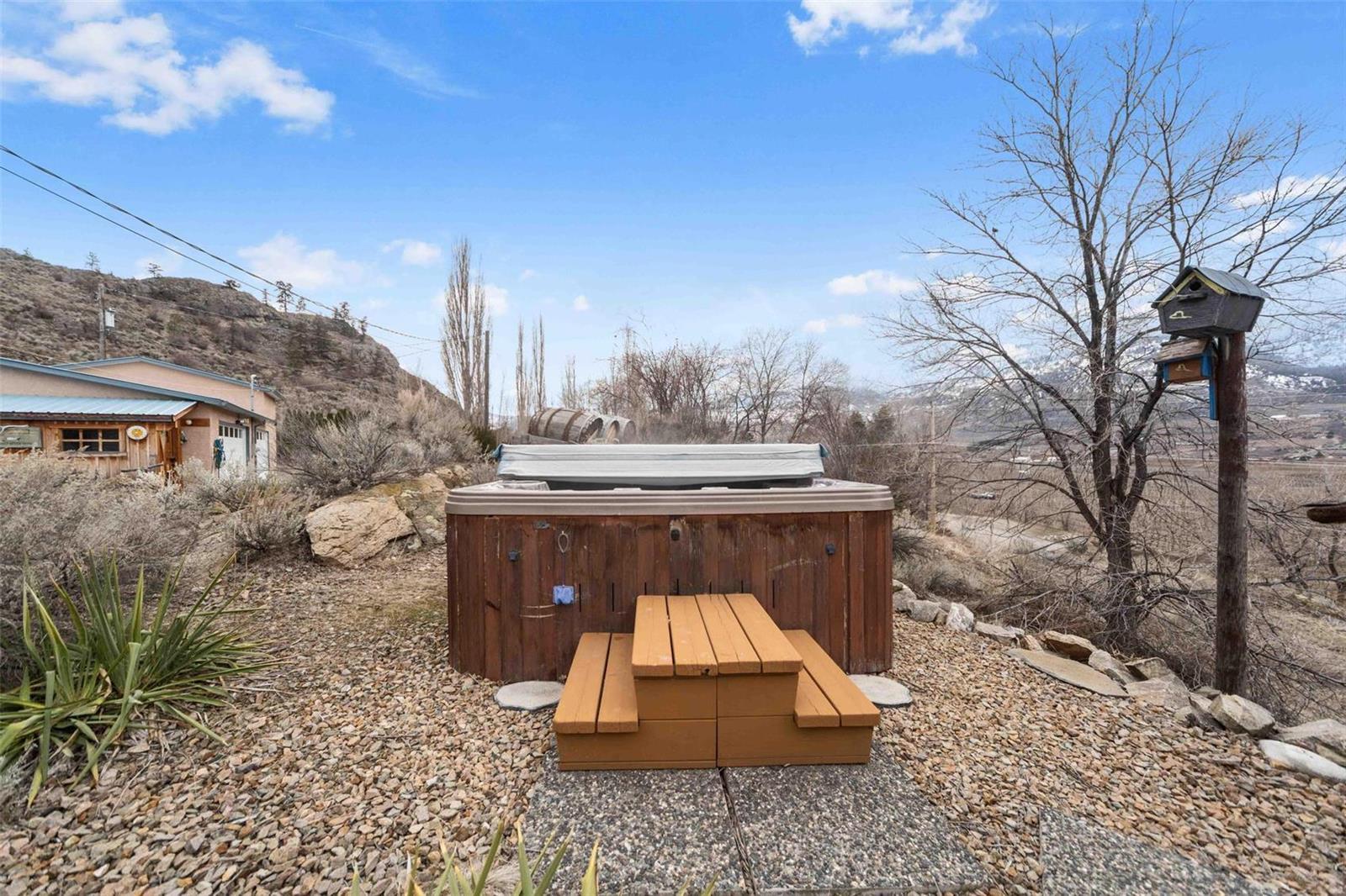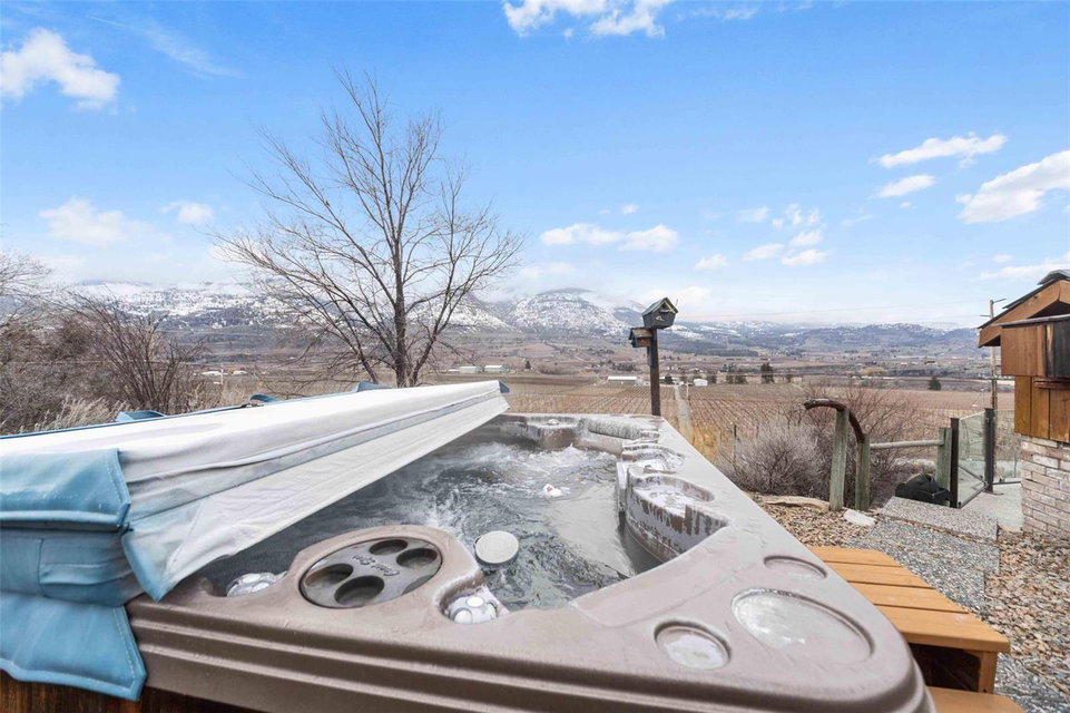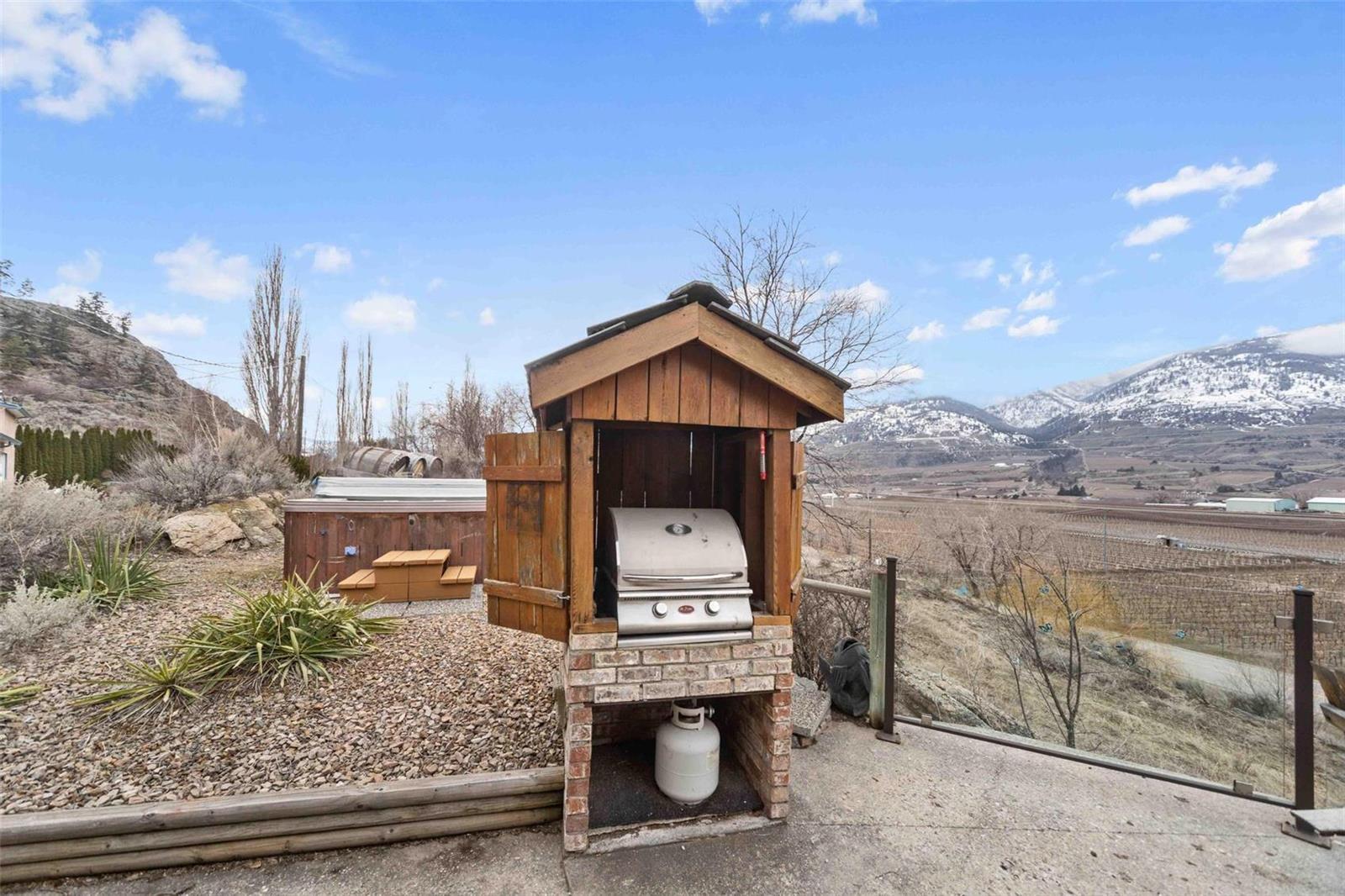 Dream retirement or vacation escape in the heart of Canada’s wine capital, Oliver, BC. 4 mins to Area 27 Racetrack and 10 mins to Osoyoos. Private vineyard view home on the famous Black Sage Rd. Car collectors + mechanics dream w/large 30×70 htd shop/garage w/ car hoist and tools, including built in air compressor. 2 private acres with a charming 3bdrm+3 bath brick house with many updates. Park-like irrigated grounds with beautiful trees, ancient granite rocks form the hillside and room for vines or an additional garden below the house. Backs onto protected Osoyoos Indigenous land with regular sightings of BigHorn Sheep, deer, wild horses, and an amazing variety of birds. Open concept kitchen and light filled great room with soaring ceilings + wood burning f/p. South-west facing wrap around deck with bbq, hot tub perfectly situated for spectacular sunsets. Mins to Burrowing Owl, Black Hills, Phantom Creek wineries and steps to the top 3 vineyard restaurants in the South Okanagan. No rental restrictions , explore summer short term rental income potential @$10,000-$12,000/mo. Room to park all your toys and even RV power, water and septic. Mins to the town of Oliver. Feel the stress melt away as you enter the winding private driveway and settle into the views of the beautiful mountains, valley + vineyards below. (id:17834)