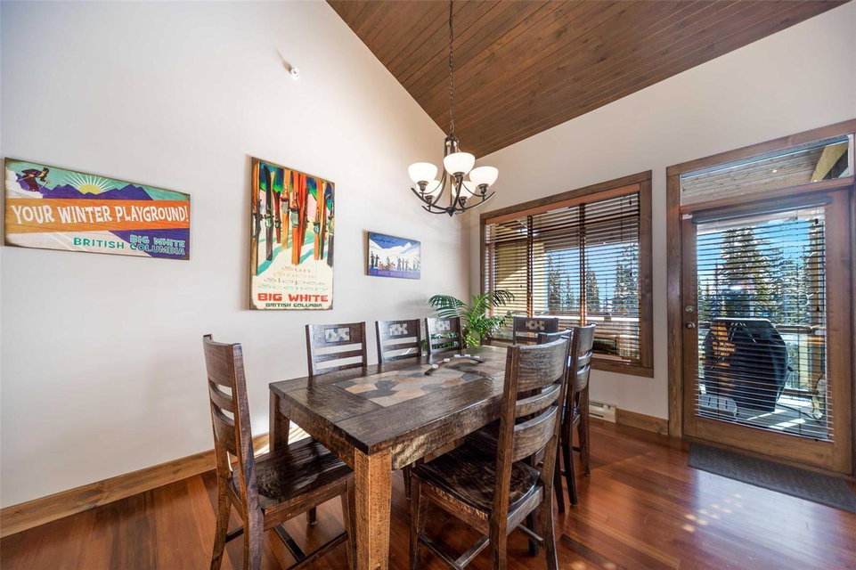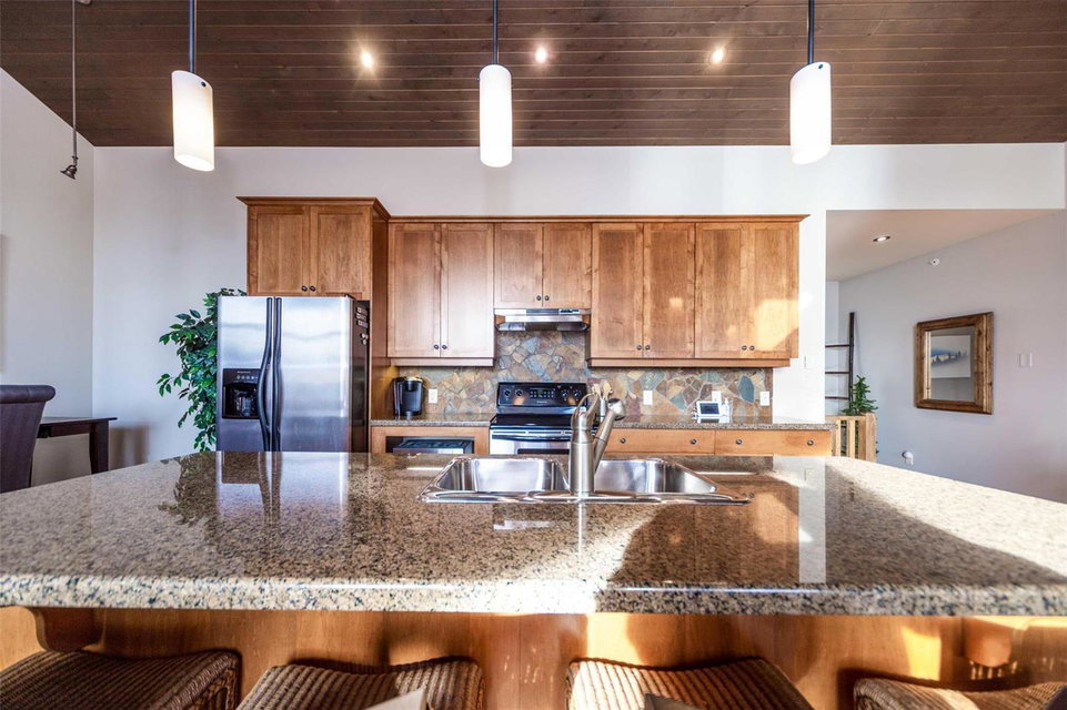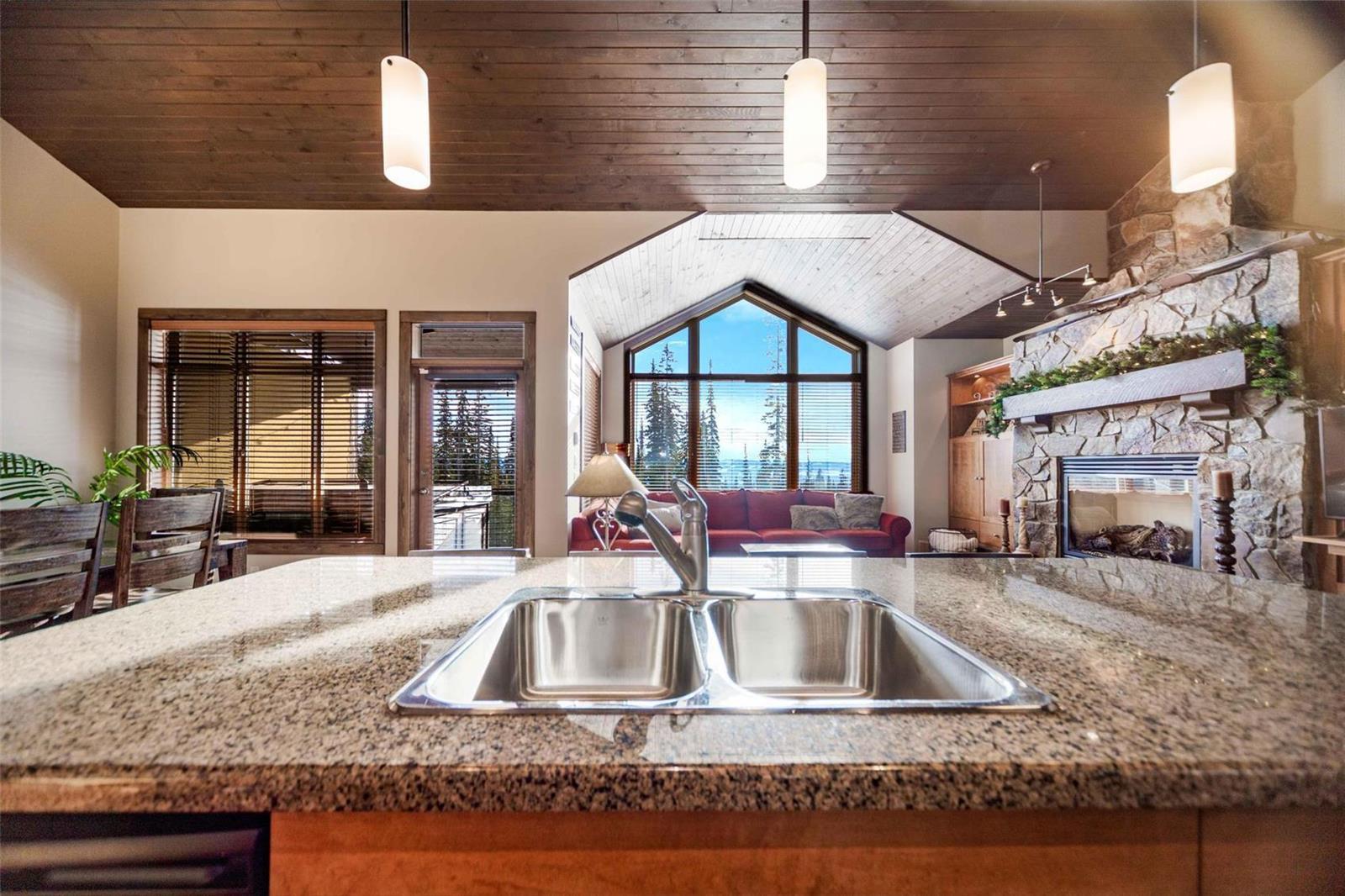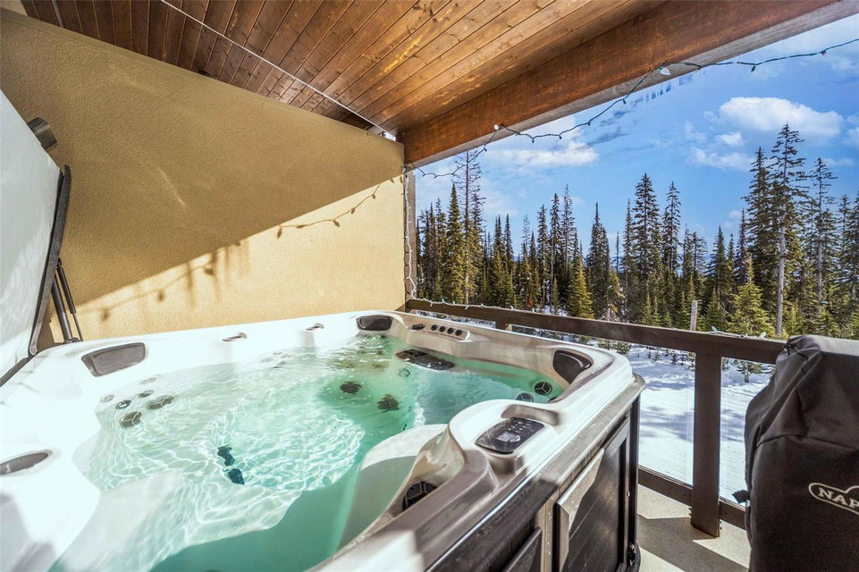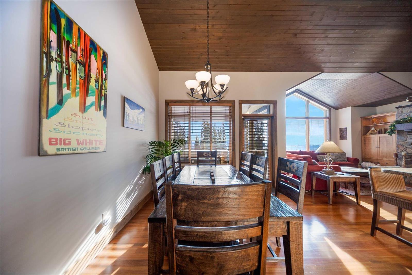 Have you been dreaming about the ultimate Big White family ski home? What would you say if you could have your ski home paid for with regular rental income? This 1400 sq ft 2 bdrm + 2 bath fully furnished and turn-key ready townhome in the sought after Southpoint building has gorgeous views of the Monashee Mountains and Valley below. Ideal family location with a short walk to gondola, Happy Valley Day lodge, steakhouse, skating , tubing. Ski, bike or snowmobile in right to your own private hot tub and your private htd garage. Soaring ceilings and a cozy rock fireplace in the liv rm, open concept kitchen with stainless appliances and plenty of counter space and bar seats for 4. Steam shower in the primary bath and all tiles are heated. Watch the fireworks from your hot tub. Propane bbq hook-up and two private ski lockers. Currently sleeps up to 8 guests. No rental restrictions makes this a great opportunity! Solid strata. Rental income could be $25-$30k annually. Owner occupied and in excellent condition. No rental restrictions and no revenue share required. No current rental commitments. New hot tub and new paint in 2020. No GST. Available for a quick possession March 1 in time for Spring Break (id:17834)