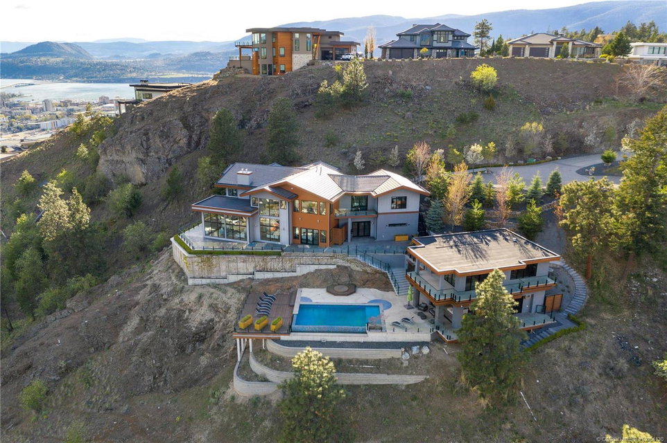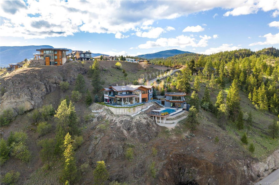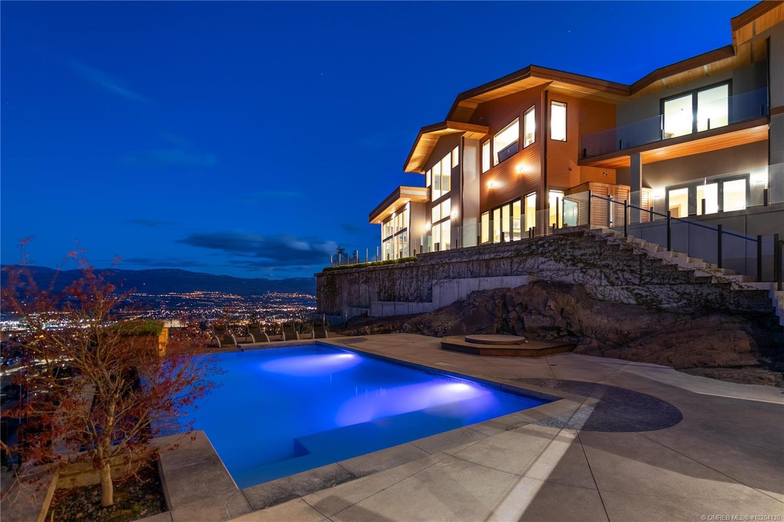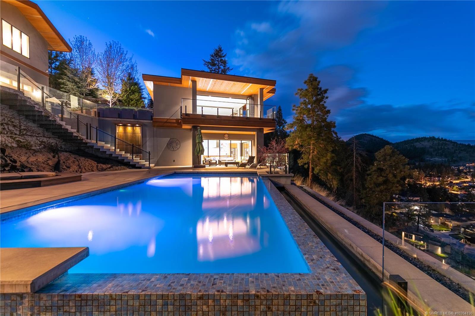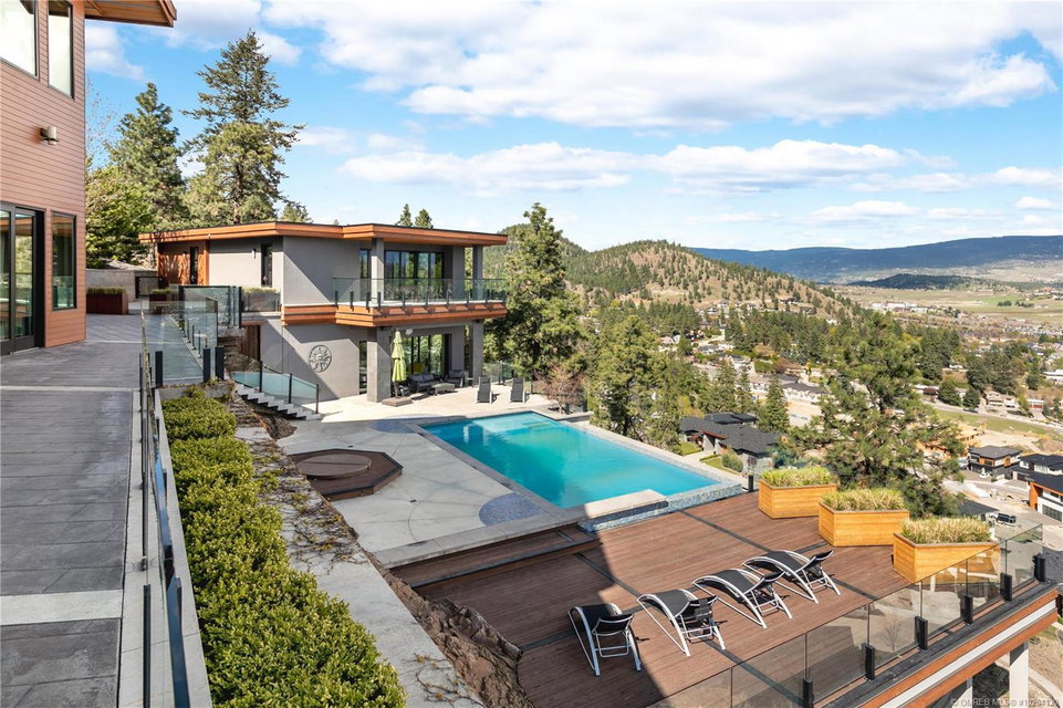 The #1 address in Kelownas famous Highpointe gated community. Rare private 3.6 acre family compound with stunning views. 2 titles. 2 addresses. 733 Forestridge is a 5 bdrm modern main house + 2 bdrm guest house w/7500 sq ft of total space. Built into the granite cliffs with sweeping lake, mountain and valley views. 723 Forestridge is an oversized estate lot next door that could be sold , developped into a custom 2nd home or kept for the ultimate in privacy. Architecturally designed modern home built right into the granite cliff with panoramic views. 6000 sq. ft. main house 5 bdrms + 5 baths plus a 1600+ sq ft Pool Guest House w/2 bdrms, 2 baths office gym kitchen+living room that opens up onto the infinity pool+hot tub. Every detail has been designed around family and entertaining such as a media room, bar/lounge, wine cellar, outdoor kitchen, multiple decks, ample storage and a laundry/mudroom. Control 4 smart home system. Outdoor wrap around spaces might just become your favorite spots to take in both the morning sunrise to the east + evening sunsets. The ultimate balance of nature (walk right out to Kelowna’s largest park+trail system) yet mins to Airport,wineries,+restaurants, Kelowna Golf and CC, UBCO, Yacht Club, downtown. Highpointe, Kelownas most exclusive gated community, low maintenance turnkey. See floorplans for approx. measurements of main + guest house. (id:17834)