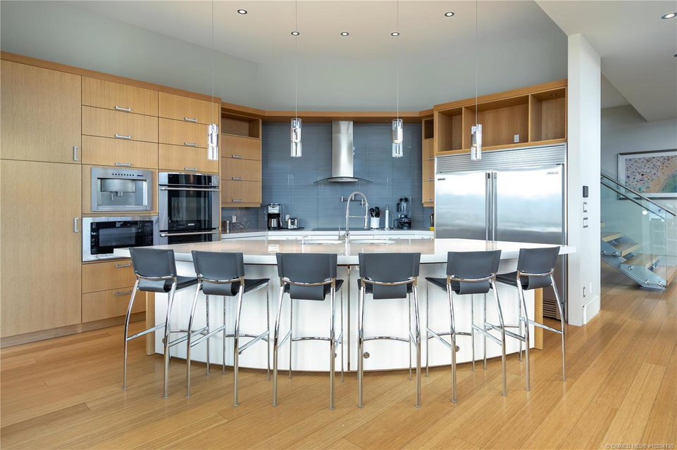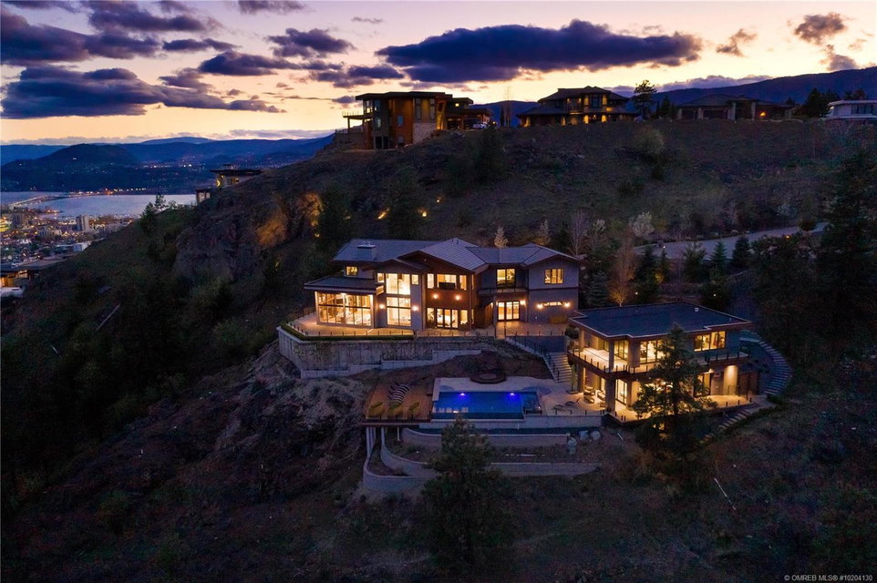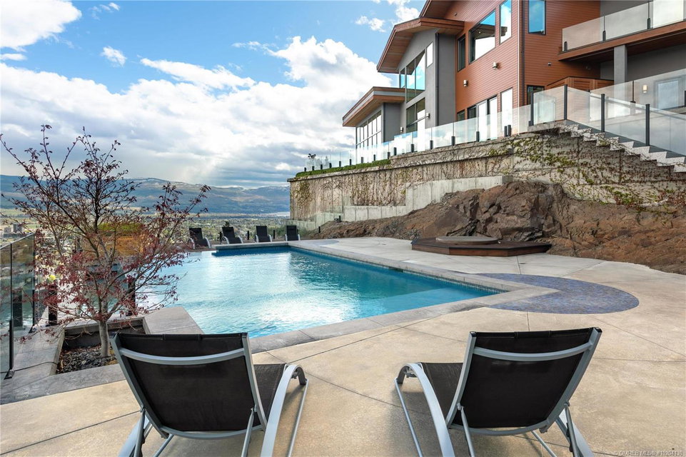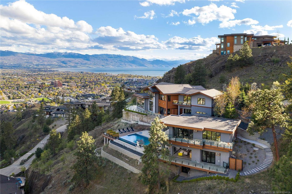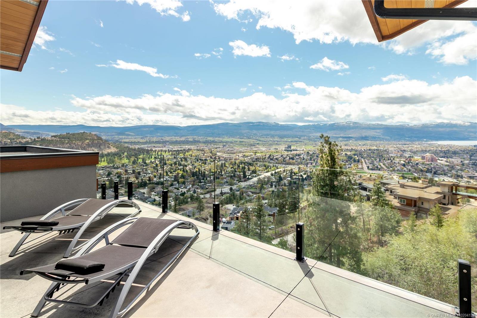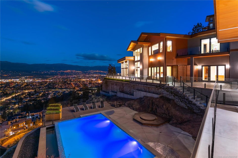 The #1 address in Kelownas famous Highpointe gated community. Rare private 3.6 acre family compound with stunning views. 2 titles. 2 addresses. 733 Forestridge is a 5 bdrm modern main house + 2 bdrm guest house w/7500 sq ft of total space. Built into the granite cliffs with sweeping lake, mountain and valley views. 723 Forestridge is an oversized estate lot next door that could be sold , developped into a custom 2nd home or kept for the ultimate in privacy. Architecturally designed modern home built right into the granite cliff with panoramic views. 6000 sq. ft. main house 5 bdrms + 5 baths plus a 1600+ sq ft Pool Guest House w/2 bdrms, 2 baths office gym kitchen+living room that opens up onto the infinity pool+hot tub. Every detail has been designed around family and entertaining such as a media room, bar/lounge, wine cellar, outdoor kitchen, multiple decks, ample storage and a laundry/mudroom. Control 4 smart home system. Outdoor wrap around spaces might just become your favorite spots to take in both the morning sunrise to the east + evening sunsets. The ultimate balance of nature (walk right out to Kelowna’s largest park+trail system) yet mins to Airport,wineries,+restaurants, Kelowna Golf and CC, UBCO, Yacht Club, downtown. Highpointe, Kelownas most exclusive gated community, low maintenance turnkey. See floorplans for approx. measurements of main + guest house. (id:17834)